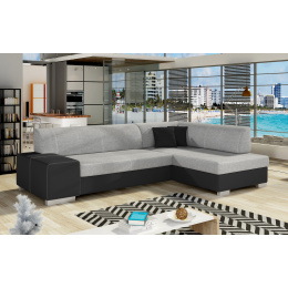 Sedací souprava Fabio v provedení Sawana 21/ eko kůže Soft 11 má rám z borovicového dřeva. Sedadlo je vyplněno vlnitou pružinou a vysoce kvalitní elastickou pěnou T30. Pomocí mechanismu DL vznikne spací plocha o rozměru 195x125 cm. Nožky jsou plastové stříbrné o výšce 8 cm. Disponuje úložným prostorem. Nosnost soupravy 315 kg. Provedení rohu pravé. Dekorační polštáře jsou součástí. Zboží je částečně smontováno.