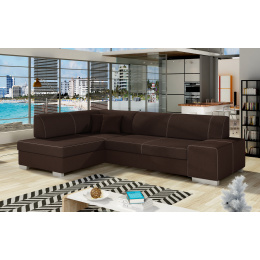 Sedací souprava Fabio v provedení Sawana 26 má rám z borovicového dřeva. Sedadlo je vyplněno vlnitou pružinou a vysoce kvalitní elastickou pěnou T30. Pomocí mechanismu DL vznikne spací plocha o rozměru 195x125 cm. Nožky jsou plastové stříbrné o výšce 8 cm. Disponuje úložným prostorem. Nosnost soupravy 315 kg. Provedení rohu levé. Dekorační polštáře jsou součástí. Zboží je částečně smontováno.
