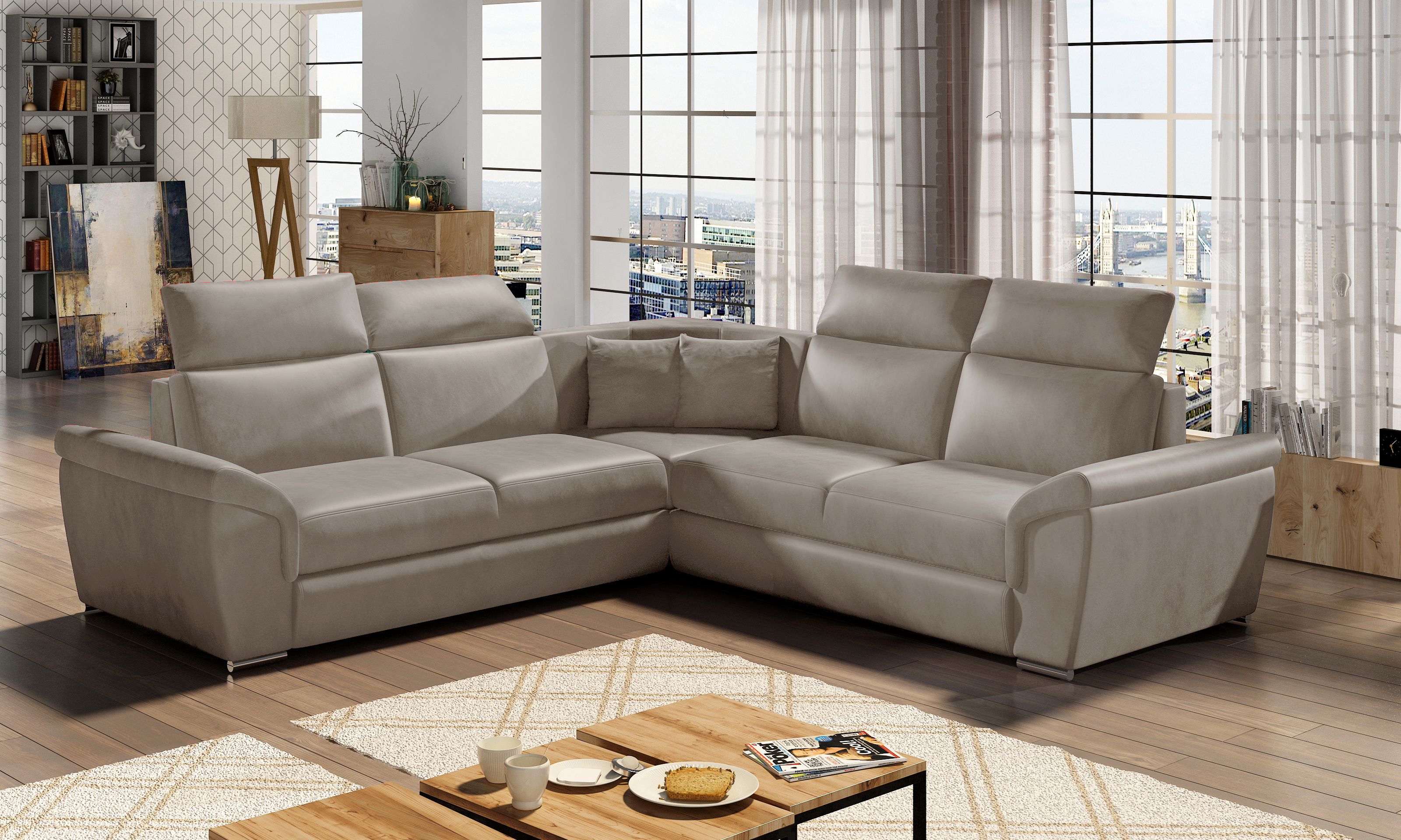 Sedací souprava v barevném provedení látka Monolith 09 má sedák vyroben z vlnité pružiny a pěny T3040 - taková kombinace poskytuje měkkost, pružnost a přiměřenou oporu. Zajímavostí jsou široké, sklopné područky, čtyři nastavitelné opěrky hlavy a plochý rohový díl. Rozkladem vznikne spací plocha o rozměru 120x200 cm. Samozřejmostí je úložný prostor. Potahová látka jako na hlavní fotografii.