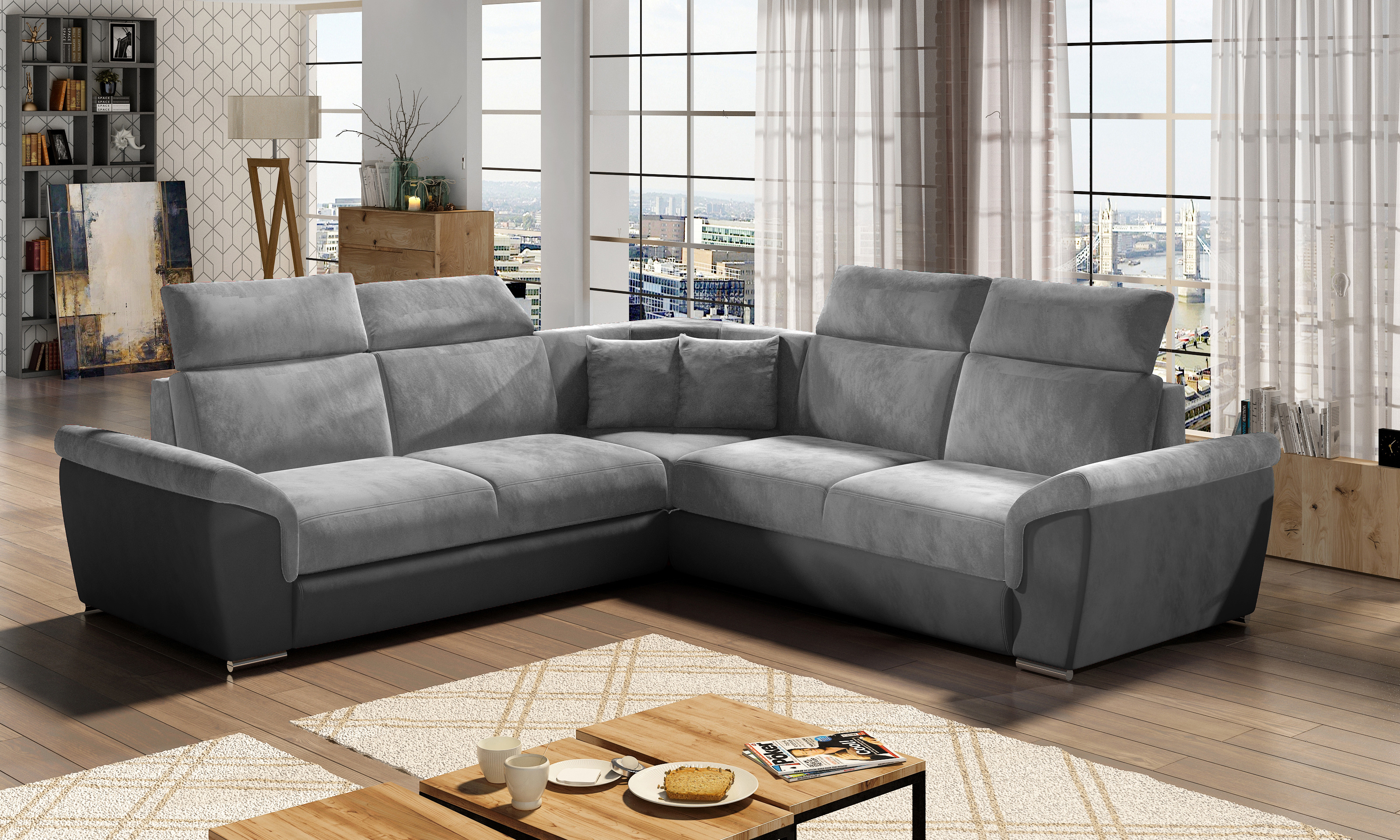 Sedací souprava v barevném provedení látka Monolith 84/ Monolith 97 má sedák vyroben z vlnité pružiny a pěny T3040 - taková kombinace poskytuje měkkost, pružnost a přiměřenou oporu. Zajímavostí jsou široké, sklopné područky, čtyři nastavitelné opěrky hlavy a plochý rohový díl. Rozkladem vznikne spací plocha o rozměru 120x200 cm. Samozřejmostí je úložný prostor. Potahová látka jako na hlavní fotografii.