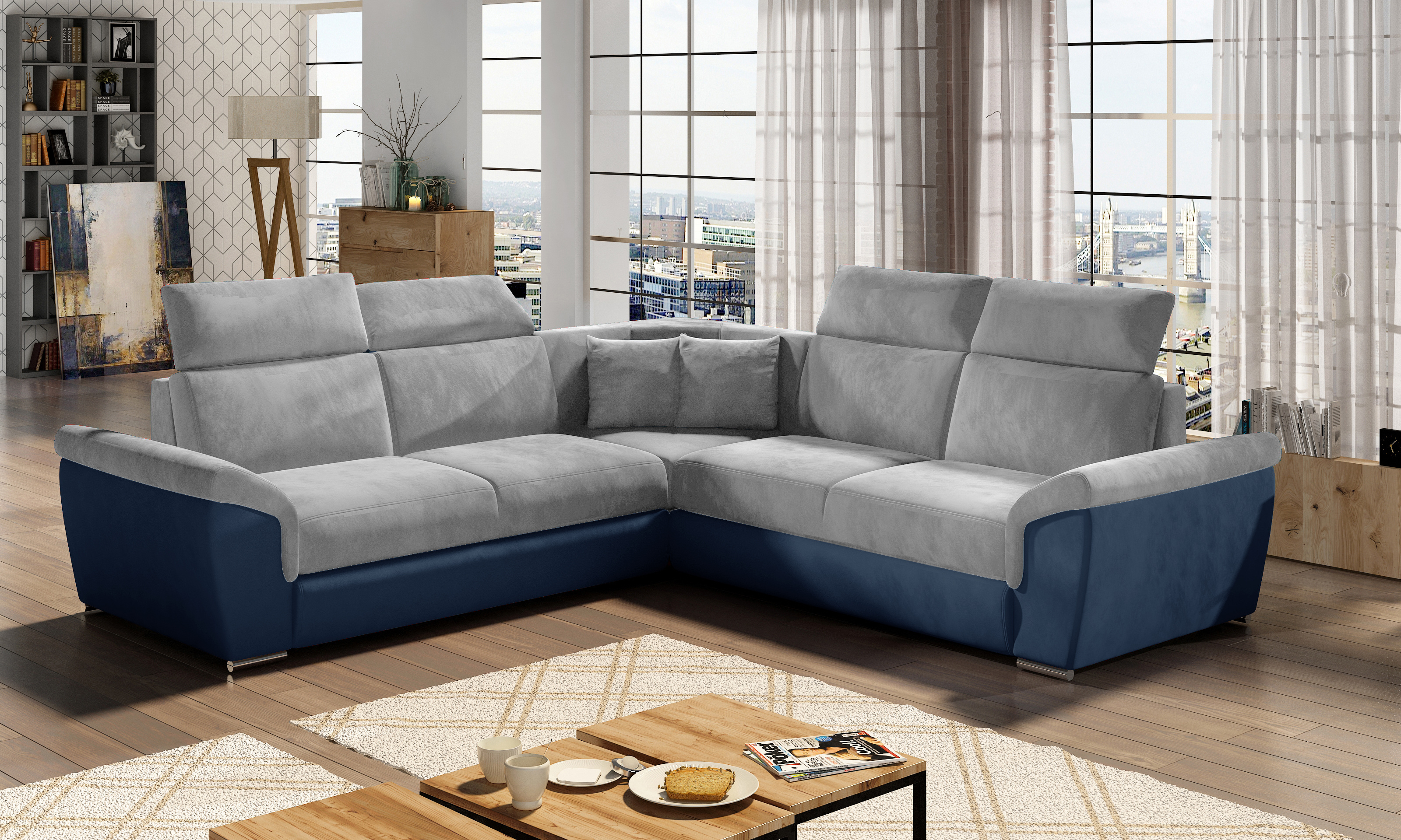 Sedací souprava v barevném provedení látka Paros 05/ Kronos 09 má sedák vyroben z vlnité pružiny a pěny T3040 - taková kombinace poskytuje měkkost, pružnost a přiměřenou oporu. Zajímavostí jsou široké, sklopné područky, čtyři nastavitelné opěrky hlavy a plochý rohový díl. Rozkladem vznikne spací plocha o rozměru 120x200 cm. Samozřejmostí je úložný prostor. Potahová látka jako na hlavní fotografii.