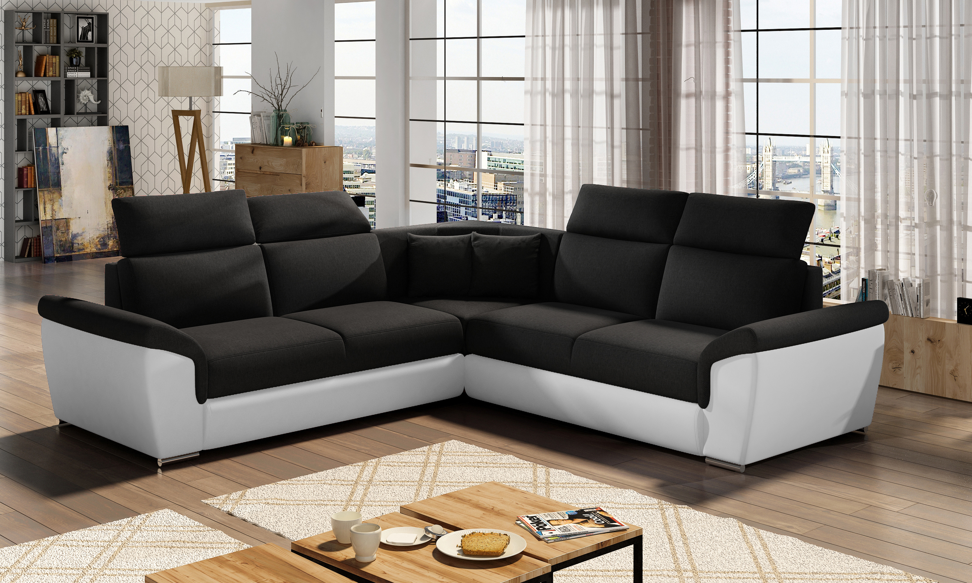 Sedací souprava v barevném provedení látka Sawana 14/ eko kůže Soft 17 má sedák vyroben z vlnité pružiny a pěny T3040 - taková kombinace poskytuje měkkost, pružnost a přiměřenou oporu. Zajímavostí jsou široké, sklopné područky, čtyři nastavitelné opěrky hlavy a plochý rohový díl. Rozkladem vznikne spací plocha o rozměru 120x200 cm. Samozřejmostí je úložný prostor. Potahová látka jako na hlavní fotografii.