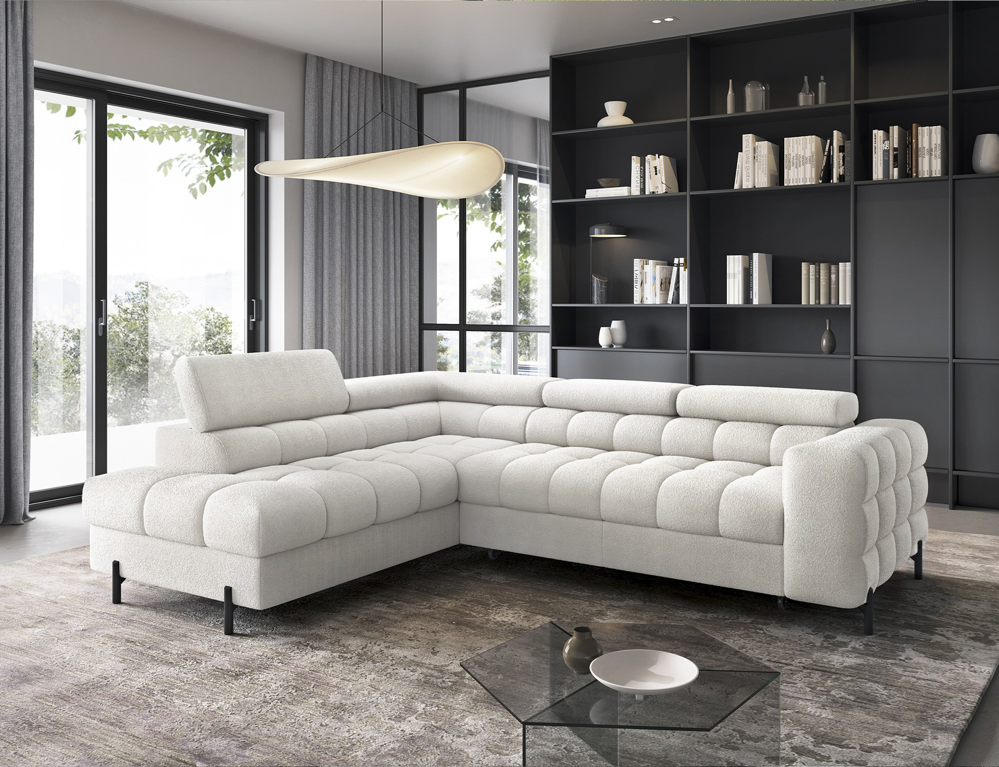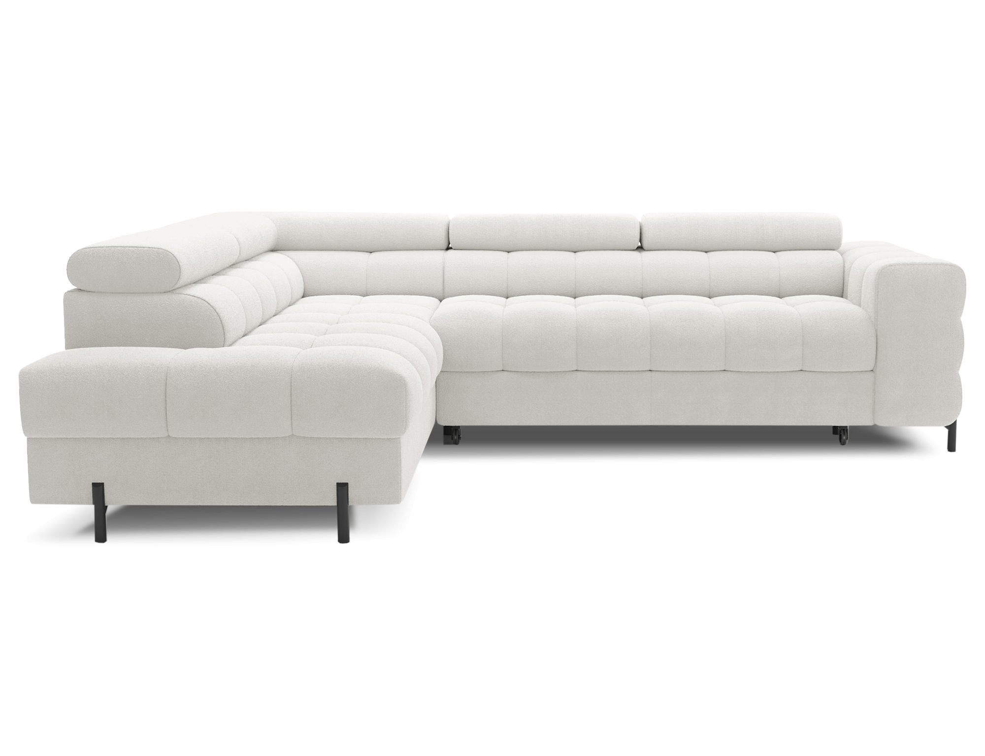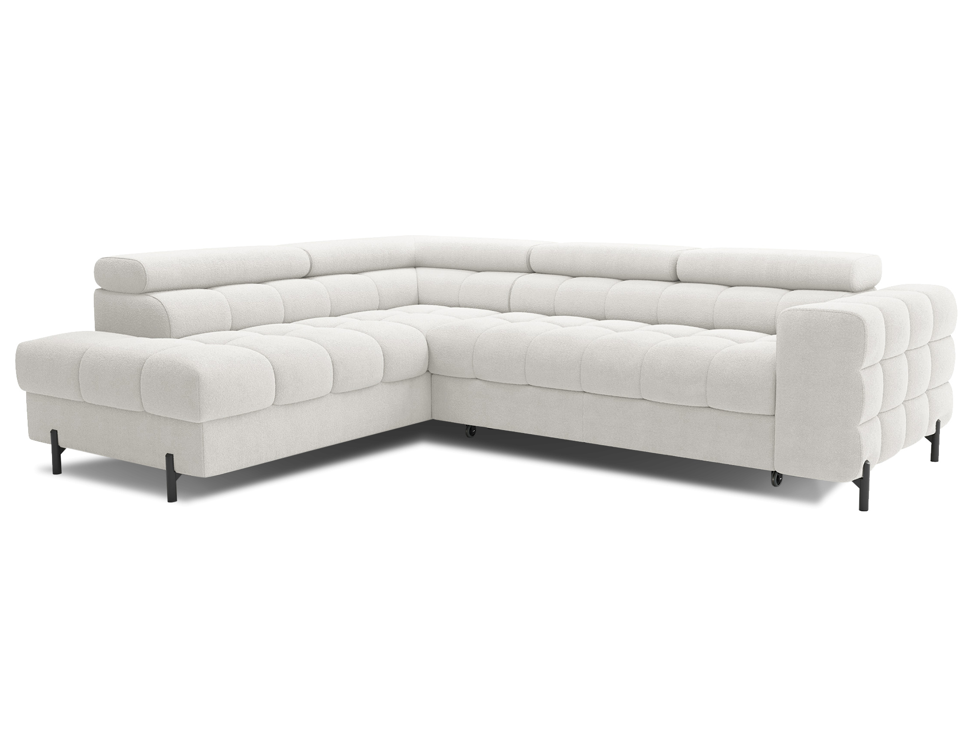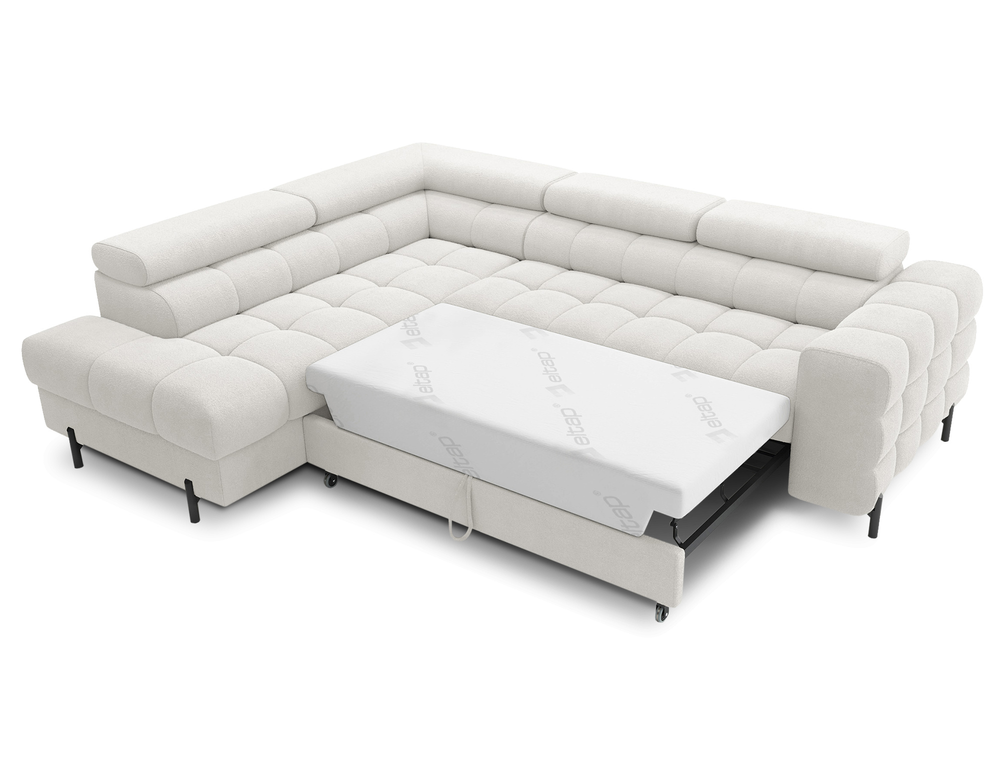 Sedací souprava Ferucce v barevném provedení Amore 01 má sedák vyplněný vlnovou pružinou typu B a pěnou T3030+HR3030( profilová). Opěradlo má výplň polyuretanovou pěnou T 2130. Rozkladem vznikne spací plocha 123x193 cm. Samozřejmostí je úložný prostor. Nohy jsou černé kovové o výšce 9 cm.. Nosnost sedací soupravy je 315 kg. Potahová látka jako na hlavní fotografii, provedení levé.