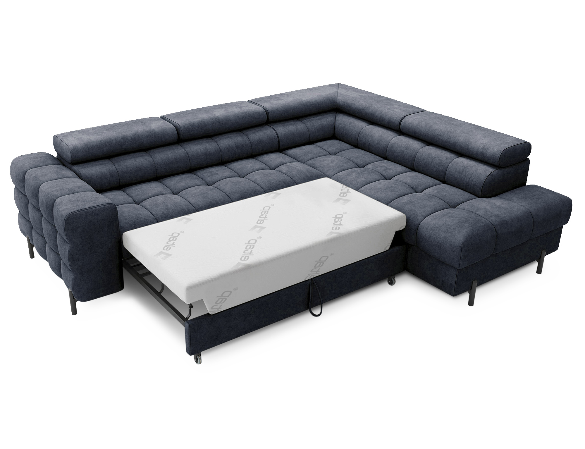Sedací souprava Ferucce v barevném provedení Aura 40 má sedák vyplněný vlnovou pružinou typu B a pěnou T3030+HR3030( profilová). Opěradlo má výplň polyuretanovou pěnou T 2130. Rozkladem vznikne spací plocha 123x193 cm. Samozřejmostí je úložný prostor. Nohy jsou černé kovové o výšce 9 cm.. Nosnost sedací soupravy je 315 kg. Potahová látka jako na hlavní fotografii, provedení pravé.