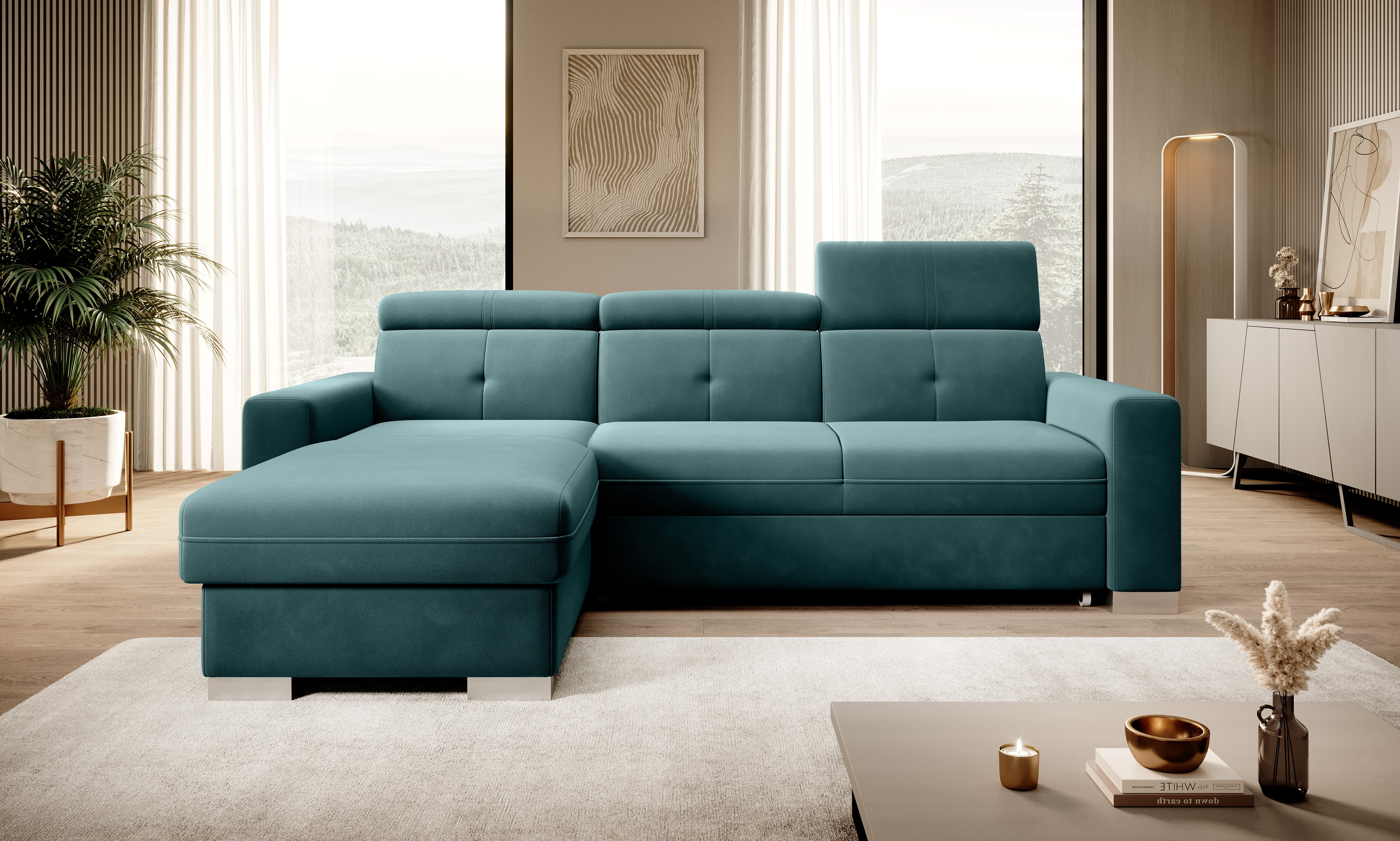 Sedací souprava Fresia v provedení Velvetmat 38 má rám z borovicového dřeva. Sedadlo je vyplněno vysoce pružnou pěnu T30. Pomocí mechanismu DL vznikne spací plocha o rozměru 204x126 cm. Nožky jsou stříbrné dřevěné o výšce 5 cm. Nosnost soupravy 315 kg. Provedení rohu levé. Zboží je částečně smontováno.