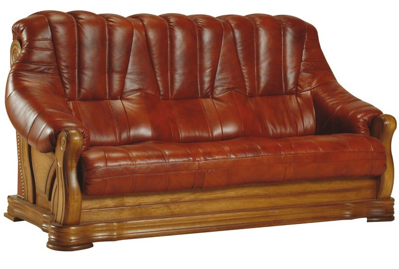 Luxusní rozkládací sedací souprava je vyrobena z pravé hovězí kůže. Kostra je vyrobena z tvrdého dubového dřeva s pevnou konstrukcí. Na bocích této pohovky je ručně vyřezaný motiv. Výplň sedáků je vysoce kvalitní polyuretanová pěna s pružinou bonel. Souprava se skládá z pohovky + 2 křesel. Pohovka s rozkladem na příležitostné spaní. Možnost výběru barvy kůže, dřeva i složení sedací soupravy FRYDERYK. Vámi zvolenou variantu barvy kůže i dřeva (dle přiloženého vzorníku ve fotkách) uveďte do objednávky.
