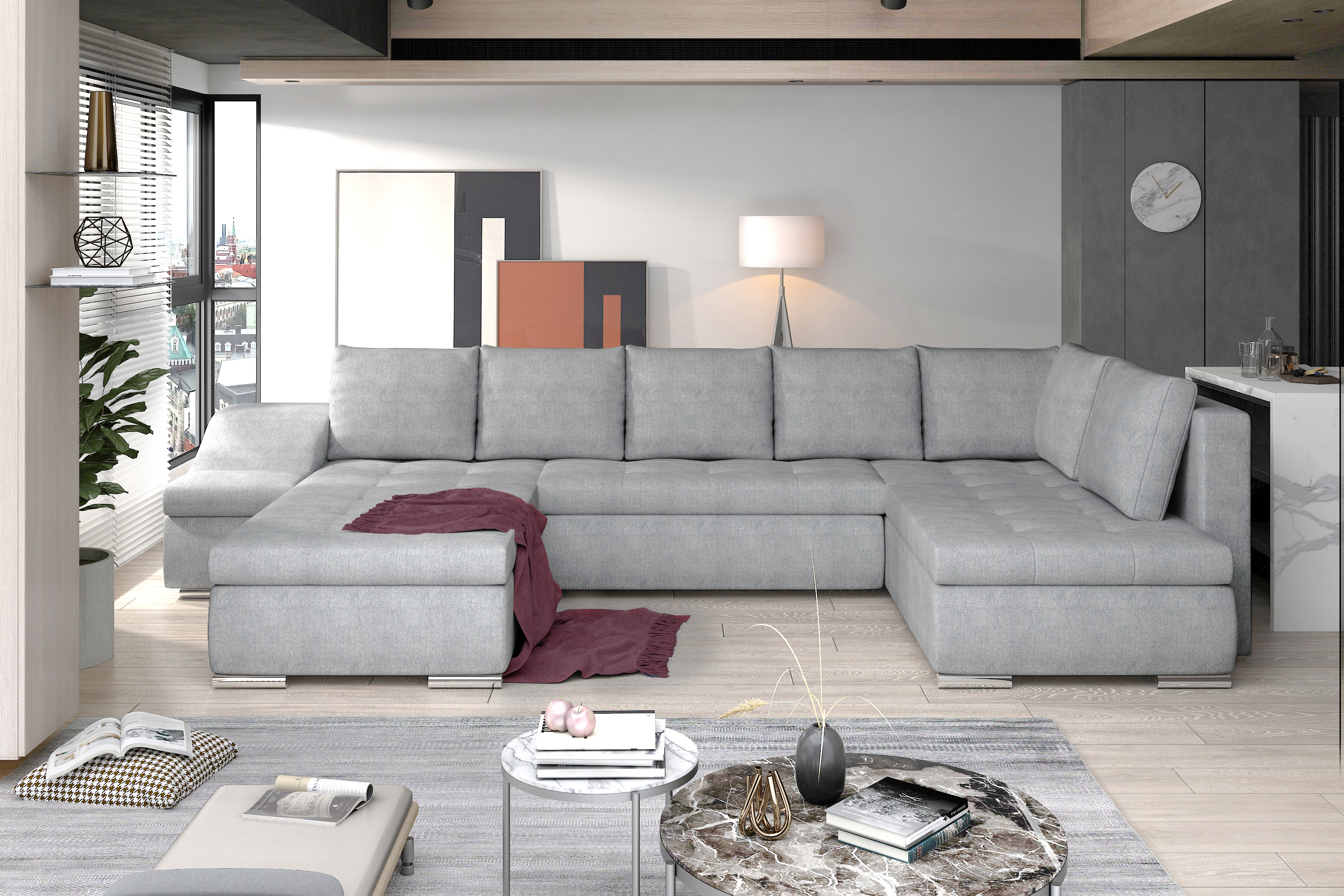 Sedací souprava GIovanni v provedení Omega 02 má rám z borovicového dřeva. Sedadlo je vyplněno vlnitou pružinou a vysoce kvalitní elastickou pěnou T3040. Opěradlo má výplň pěnou T2542. Pomocí mechanismu DL vznikne spací plocha o rozměru 294x140 cm. Nožky jsou kovové stříbrné o výšce 5 cm. Disponuje úložným prostorem a bočním prvkem, který slouží jako prostorná loketní opěrka, jež může sloužit i jako další sedák. Nosnost soupravy 405 kg. Provedení rohu levé. Dekorační polštáře jsou součástí. Zboží je částečně smontováno.