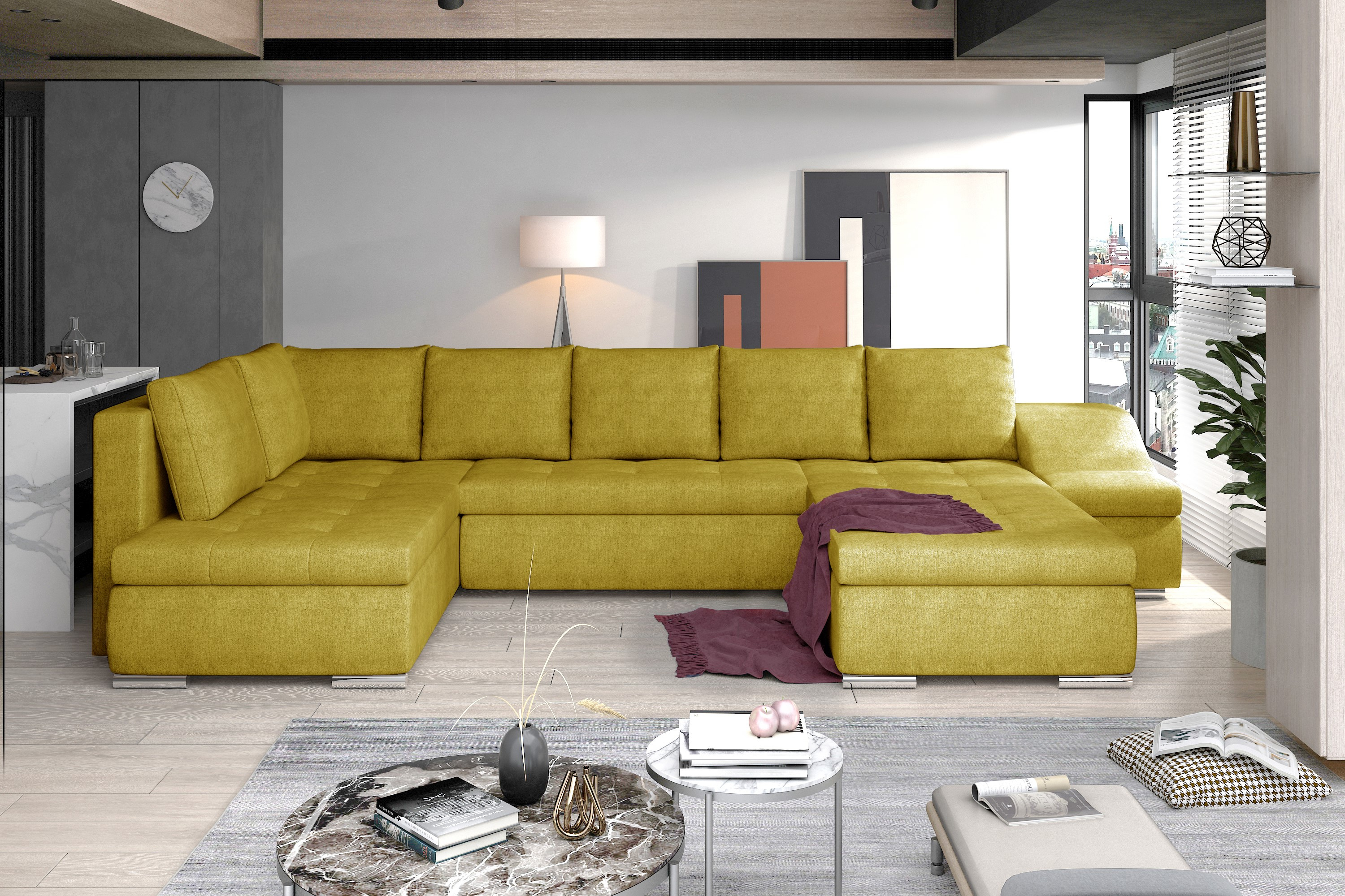 Sedací souprava GIovanni v provedení Omega 68 má rám z borovicového dřeva. Sedadlo je vyplněno vlnitou pružinou a vysoce kvalitní elastickou pěnou T3040. Opěradlo má výplň pěnou T2542. Pomocí mechanismu DL vznikne spací plocha o rozměru 294x140 cm. Nožky jsou kovové stříbrné o výšce 5 cm. Disponuje úložným prostorem a bočním prvkem, který slouží jako prostorná loketní opěrka, jež může sloužit i jako další sedák. Nosnost soupravy 405 kg. Provedení rohu pravé. Dekorační polštáře jsou součástí. Zboží je částečně smontováno.