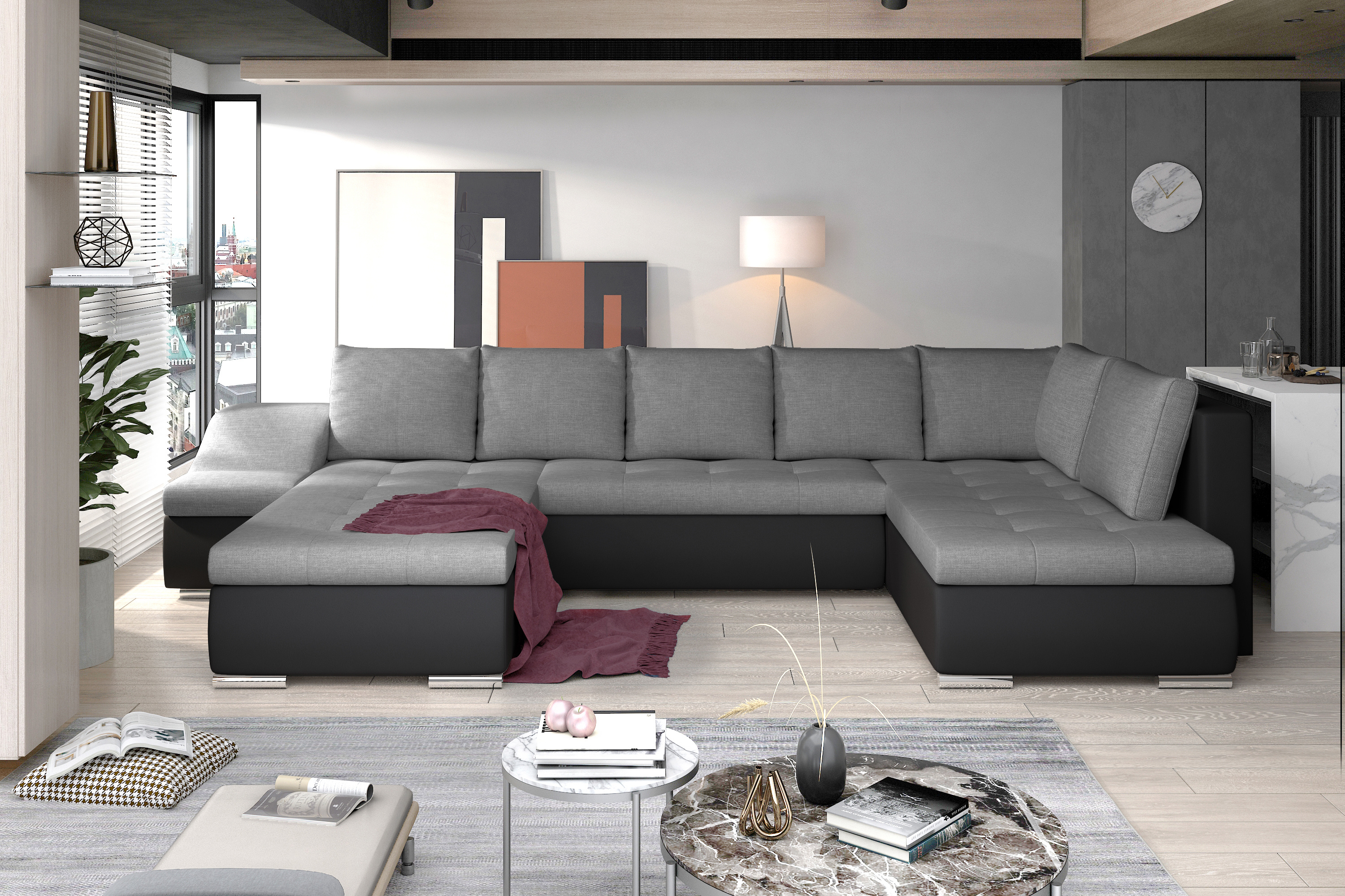 Sedací souprava GIovanni v provedení Sawana 05 / eko kůže Soft 11 má rám z borovicového dřeva. Sedadlo je vyplněno vlnitou pružinou a vysoce kvalitní elastickou pěnou T3040. Opěradlo má výplň pěnou T2542. Pomocí mechanismu DL vznikne spací plocha o rozměru 294x140 cm. Nožky jsou kovové stříbrné o výšce 5 cm. Disponuje úložným prostorem a bočním prvkem, který slouží jako prostorná loketní opěrka, jež může sloužit i jako další sedák. Nosnost soupravy 405 kg. Provedení rohu levé. Dekorační polštáře jsou součástí. Zboží je částečně smontováno.