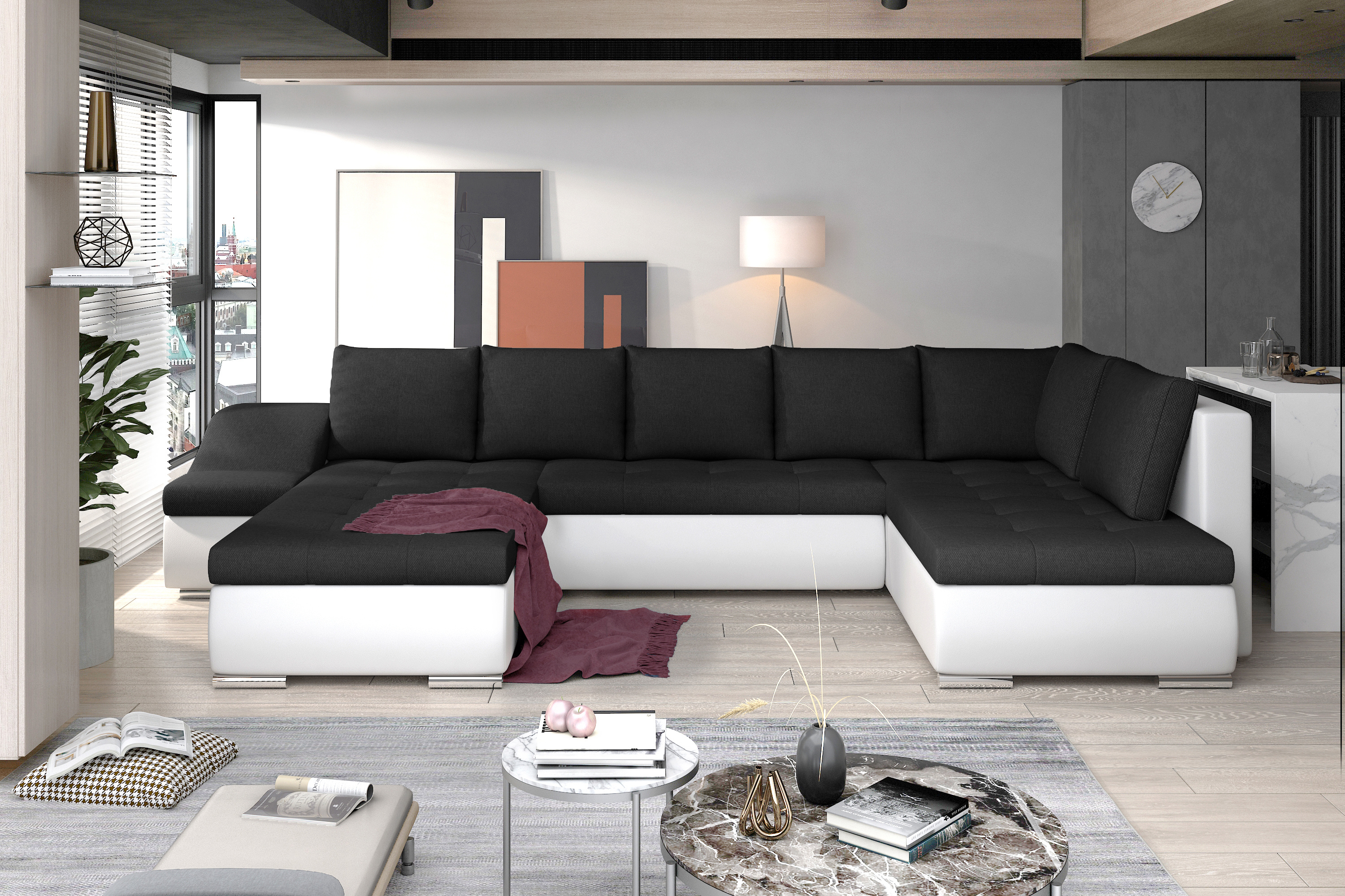 Sedací souprava GIovanni v provedení Sawana 14 / eko kůže Soft 17 má rám z borovicového dřeva. Sedadlo je vyplněno vlnitou pružinou a vysoce kvalitní elastickou pěnou T3040. Opěradlo má výplň pěnou T2542. Pomocí mechanismu DL vznikne spací plocha o rozměru 294x140 cm. Nožky jsou kovové stříbrné o výšce 5 cm. Disponuje úložným prostorem a bočním prvkem, který slouží jako prostorná loketní opěrka, jež může sloužit i jako další sedák. Nosnost soupravy 405 kg. Provedení rohu levé. Dekorační polštáře jsou součástí. Zboží je částečně smontováno.