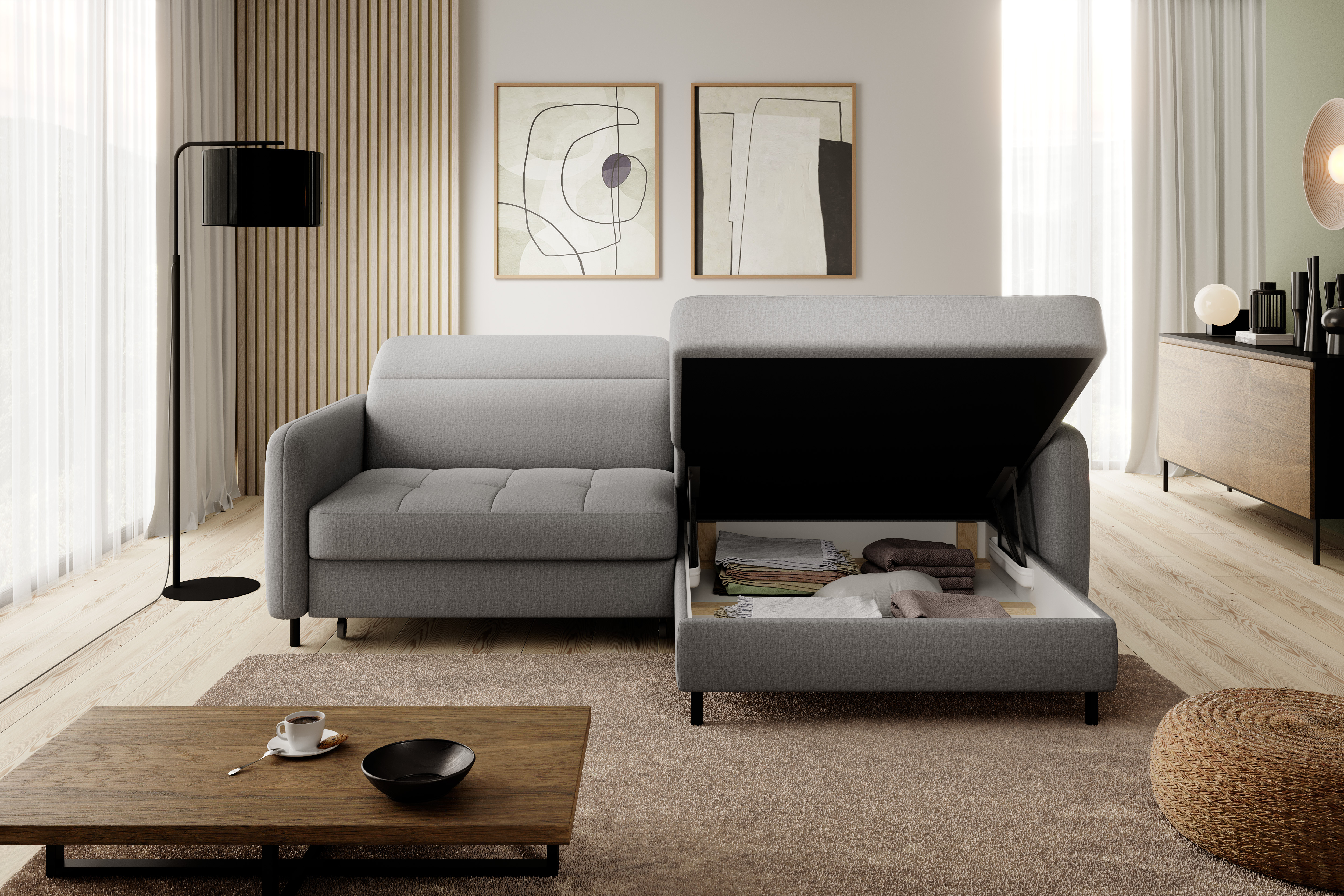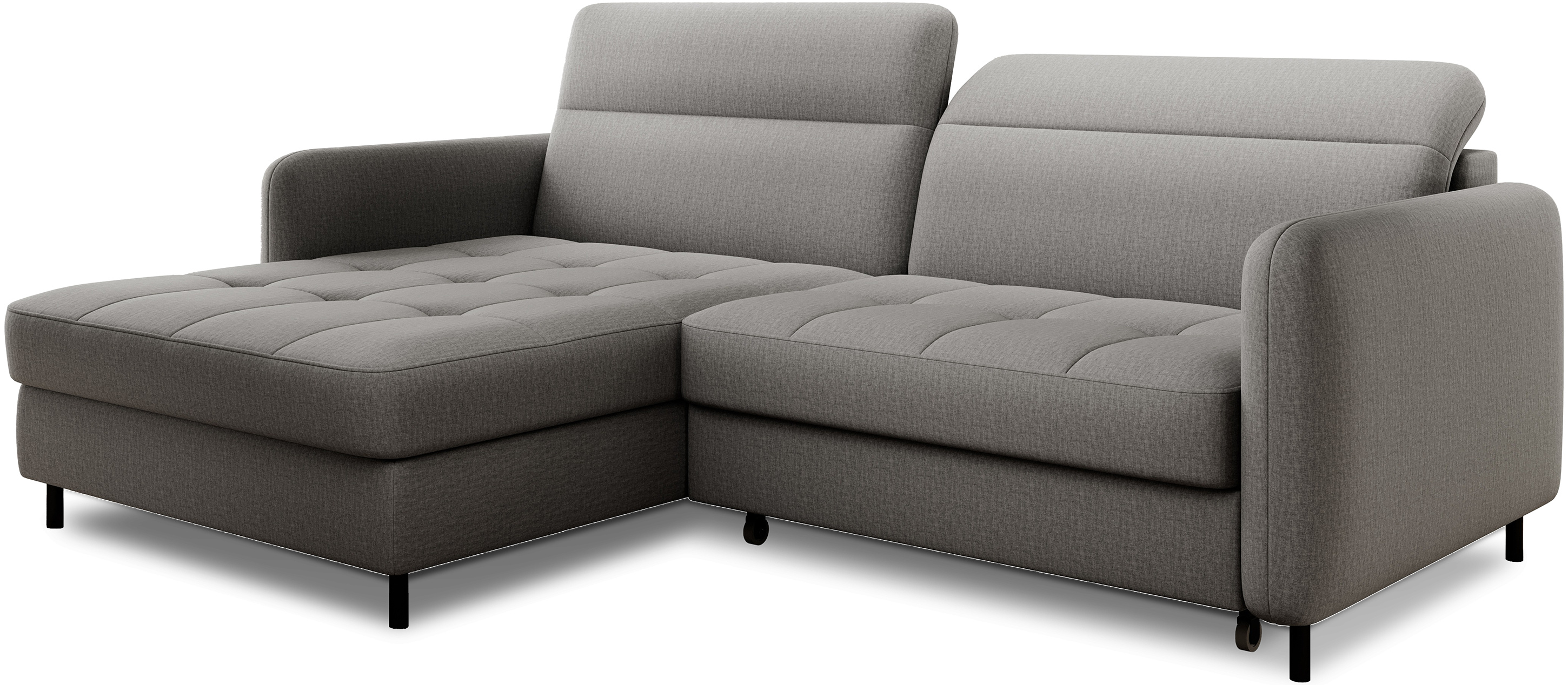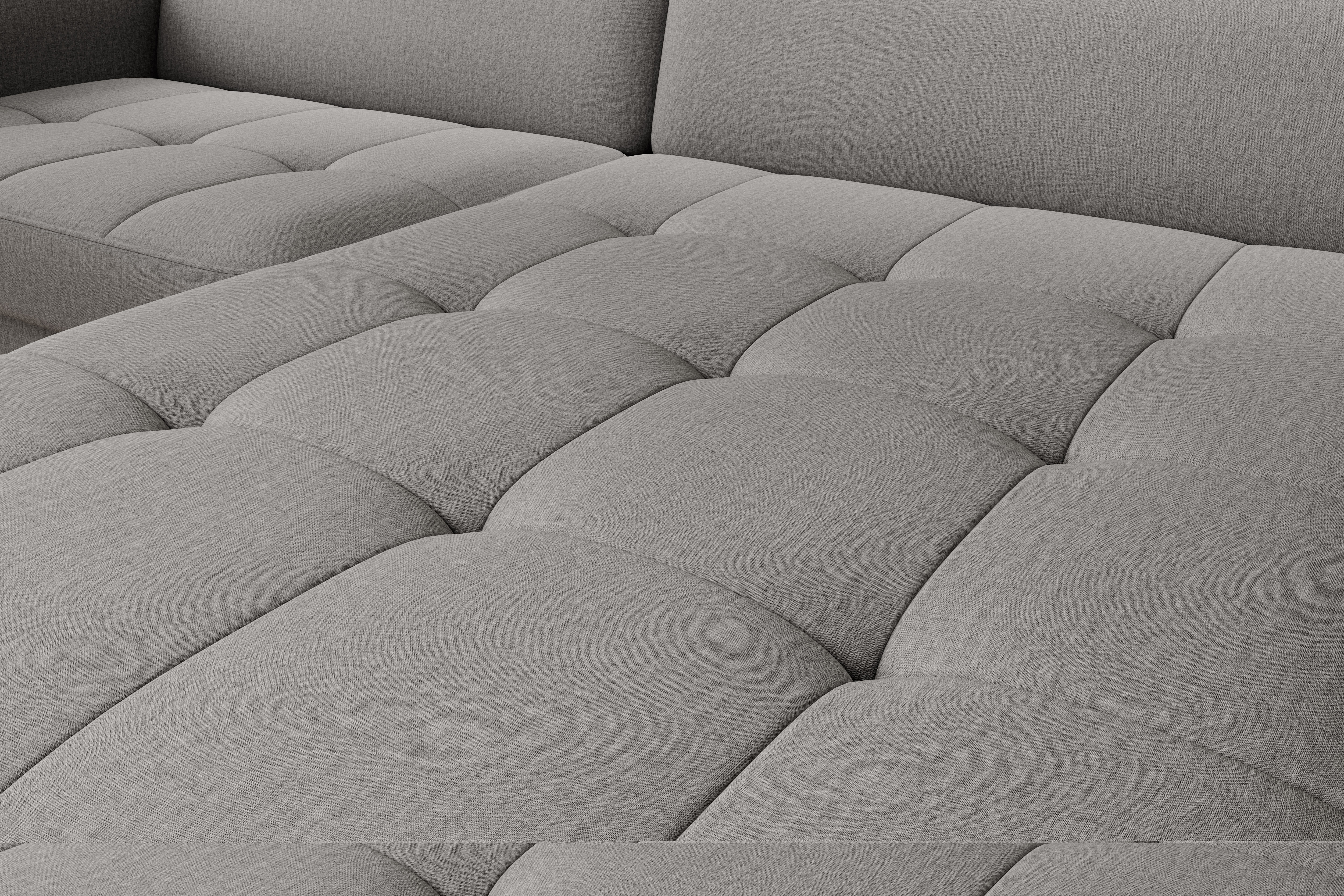 Sedací souprava Gomsi v provedení Manhattan 03 má rám z borovicového dřeva. Sedadlo je vyplněno elastickou HR pěnou a kvalitními vlnitými pružinami typu B. Pomocí mechanismu DL vznikne spací plocha o rozměru 200x128 cm. Nožky jsou černé kovové o výšce 10 cm. Nosnost soupravy 260 kg. Provedení rohu levé. Zboží je částečně smontováno.