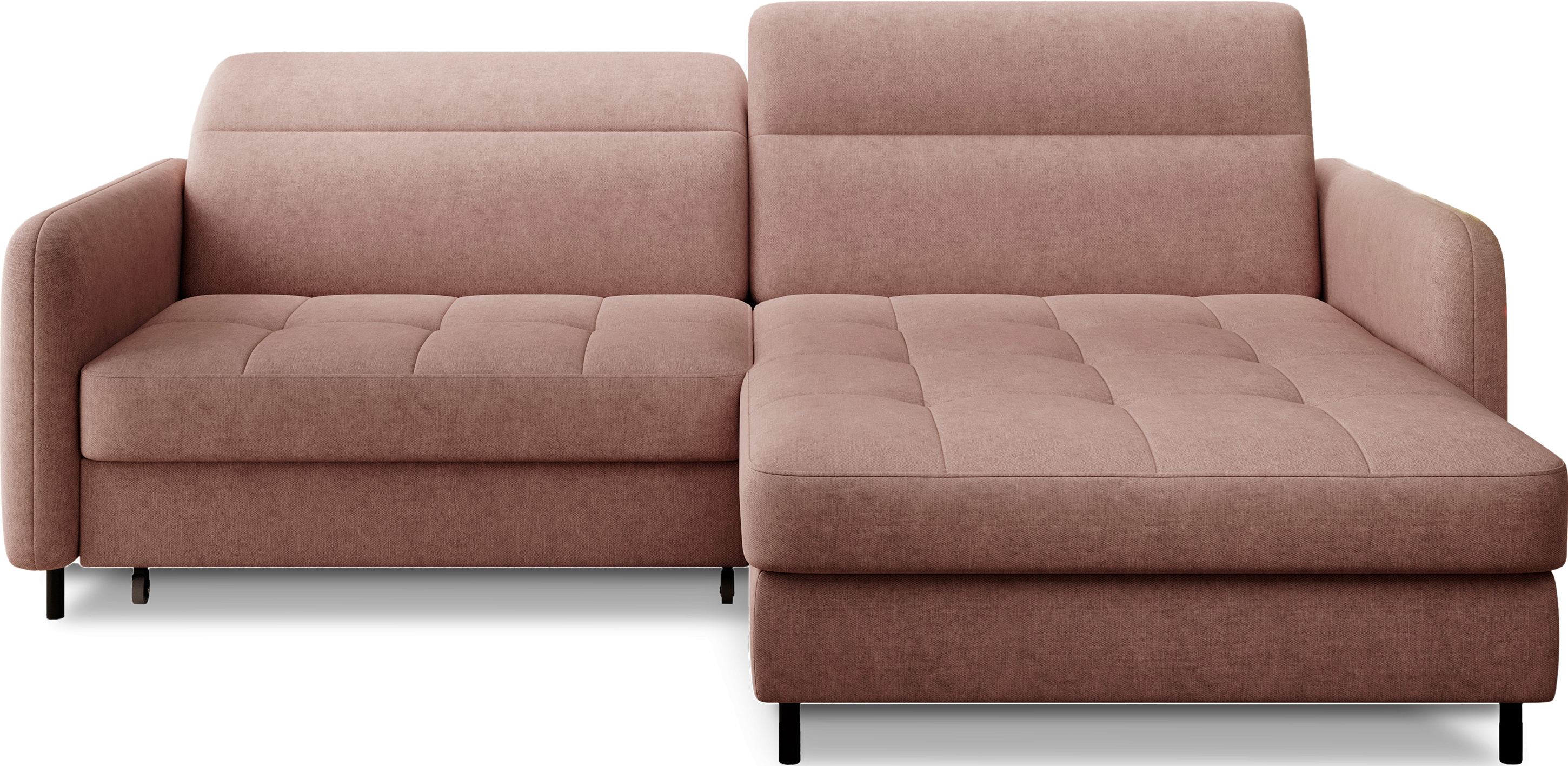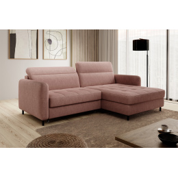 Sedací souprava Gomsi v provedení Raquel 24 má rám z borovicového dřeva. Sedadlo je vyplněno elastickou HR pěnou a kvalitními vlnitými pružinami typu B. Pomocí mechanismu DL vznikne spací plocha o rozměru 200x128 cm. Nožky jsou černé kovové o výšce 10 cm. Nosnost soupravy 260 kg. Provedení rohu pravé. Zboží je částečně smontováno.