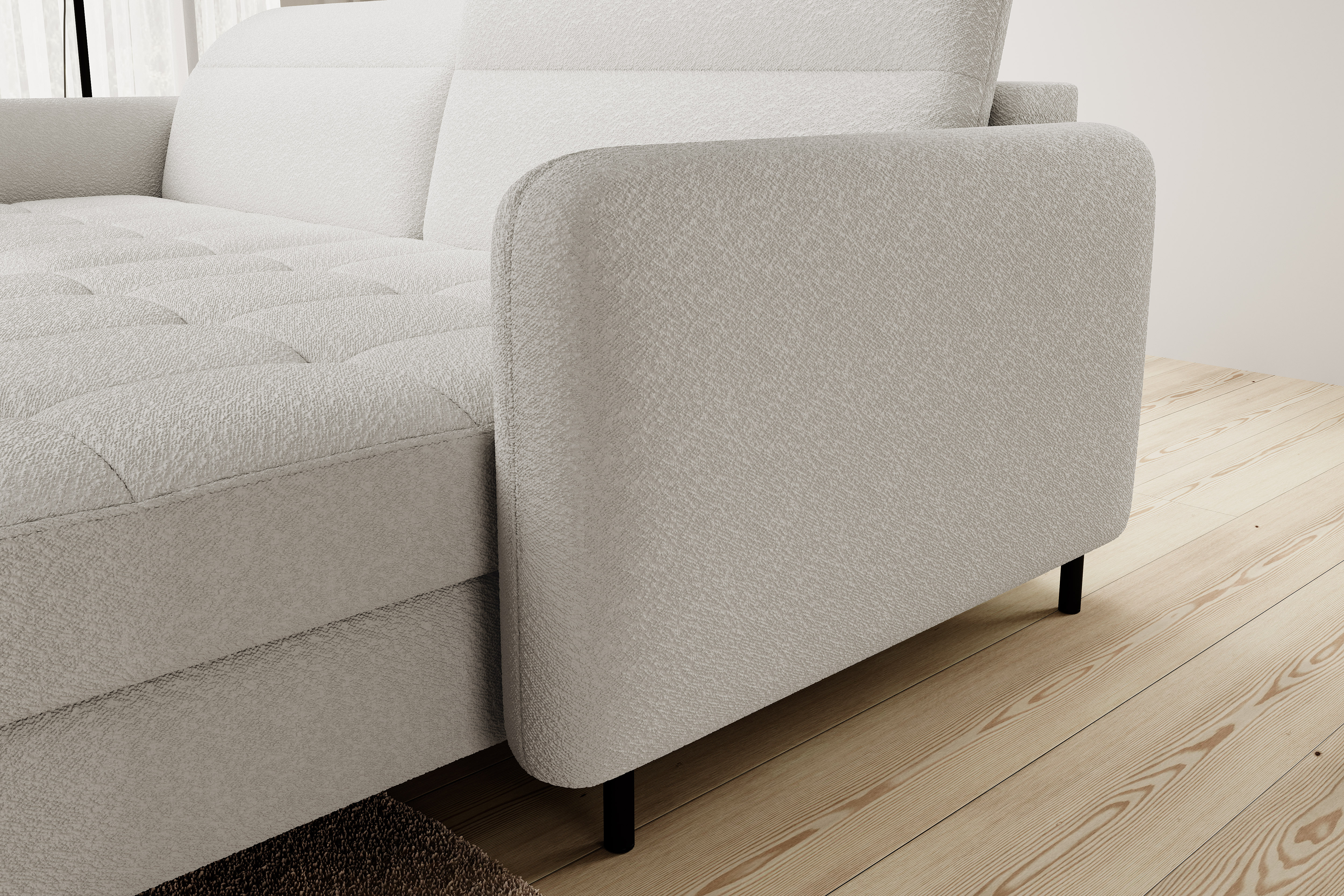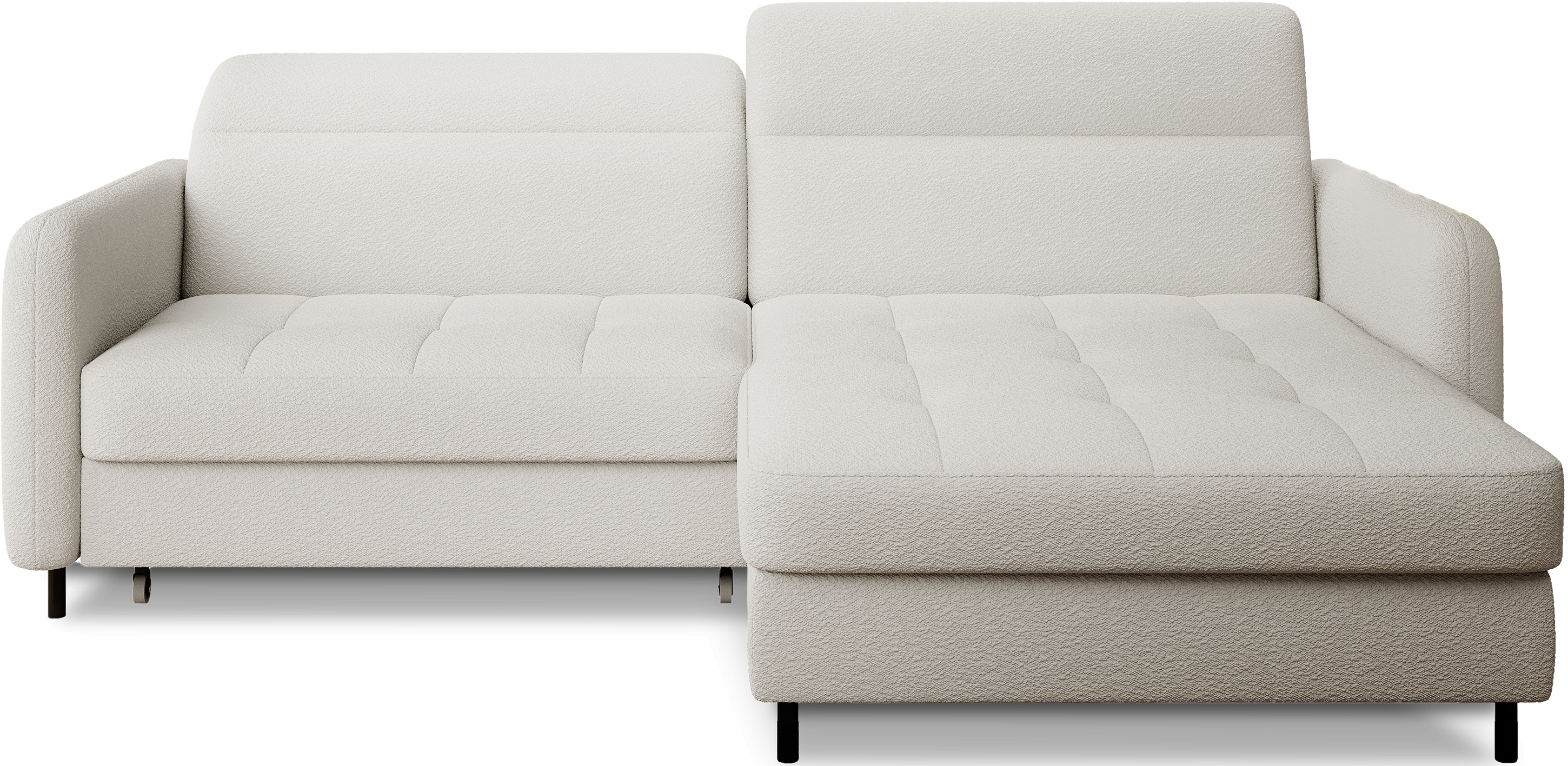 Sedací souprava Gomsi v provedení Royal 01 má rám z borovicového dřeva. Sedadlo je vyplněno elastickou HR pěnou a kvalitními vlnitými pružinami typu B. Pomocí mechanismu DL vznikne spací plocha o rozměru 200x128 cm. Nožky jsou černé kovové o výšce 10 cm. Nosnost soupravy 260 kg. Provedení rohu pravé. Zboží je částečně smontováno.