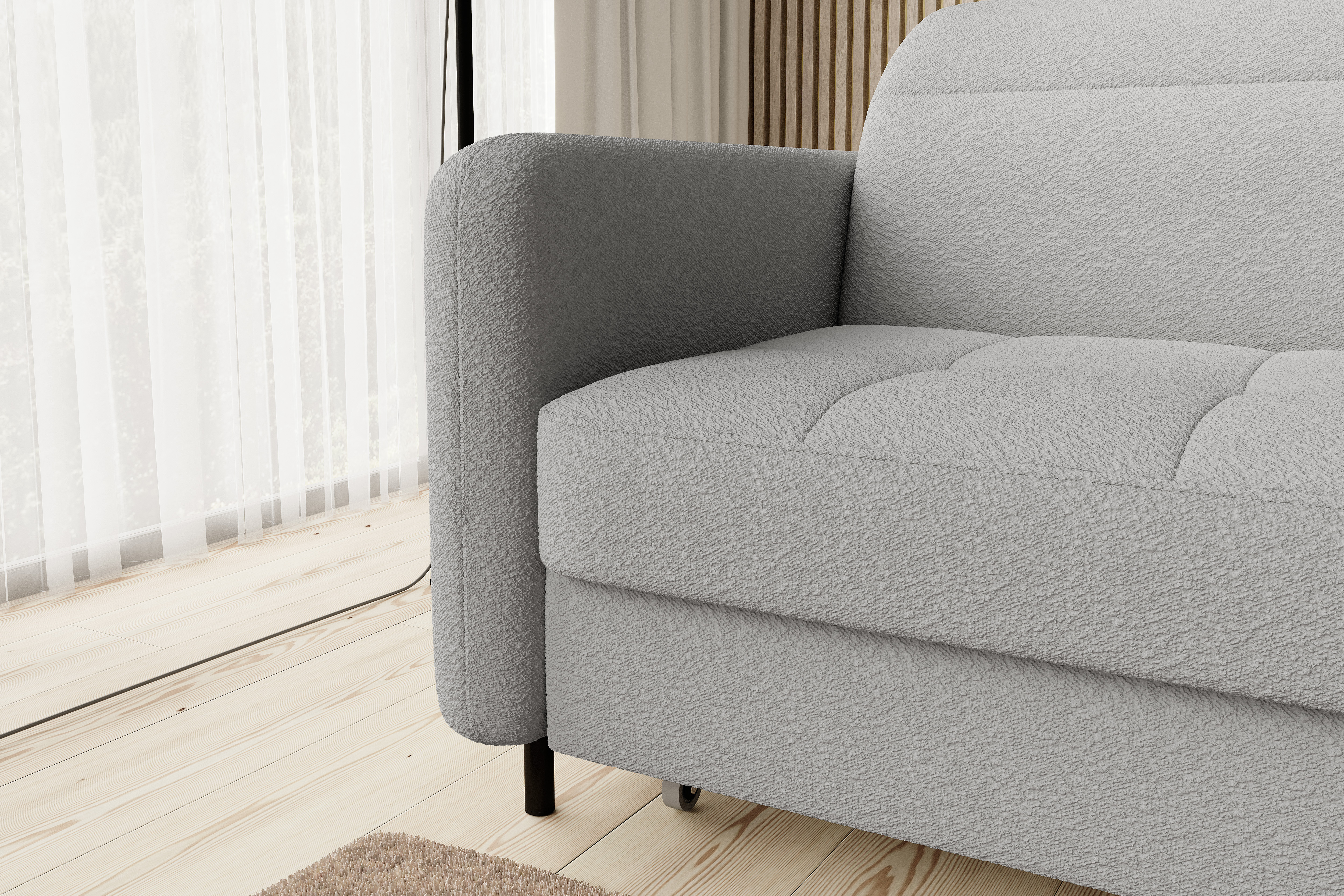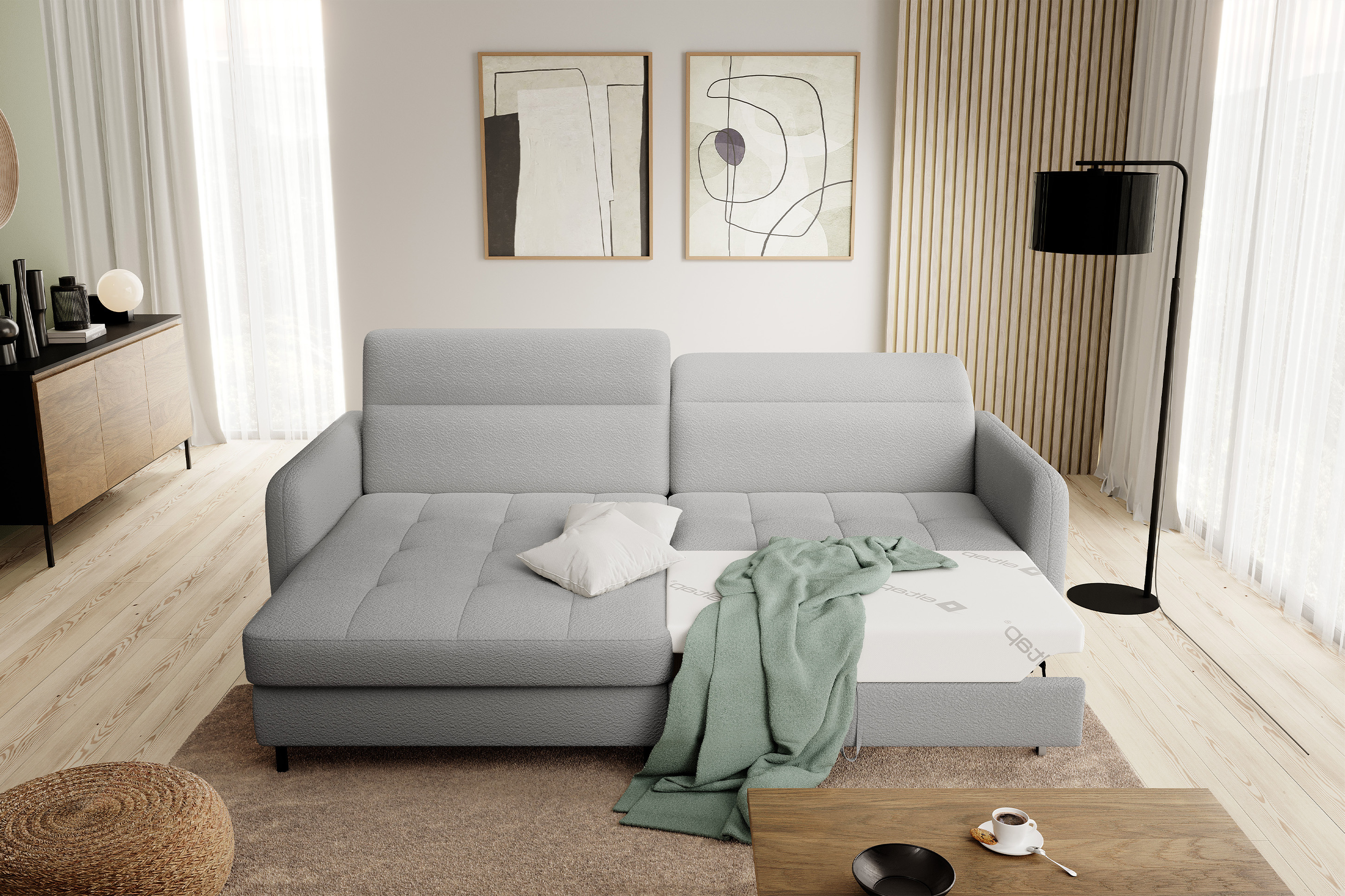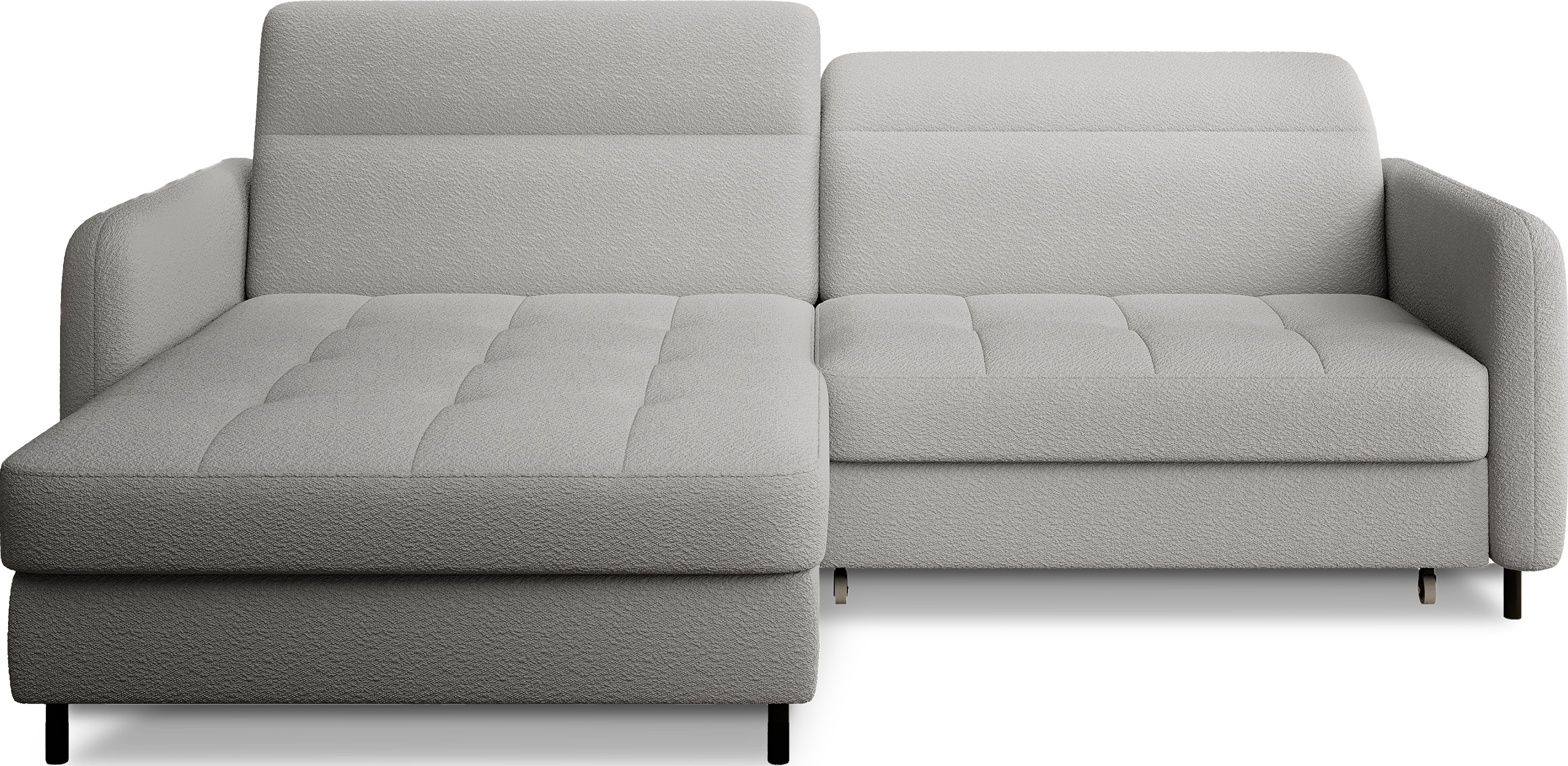 Sedací souprava Gomsi v provedení Royal 04 má rám z borovicového dřeva. Sedadlo je vyplněno elastickou HR pěnou a kvalitními vlnitými pružinami typu B. Pomocí mechanismu DL vznikne spací plocha o rozměru 200x128 cm. Nožky jsou černé kovové o výšce 10 cm. Nosnost soupravy 260 kg. Provedení rohu levé. Zboží je částečně smontováno.