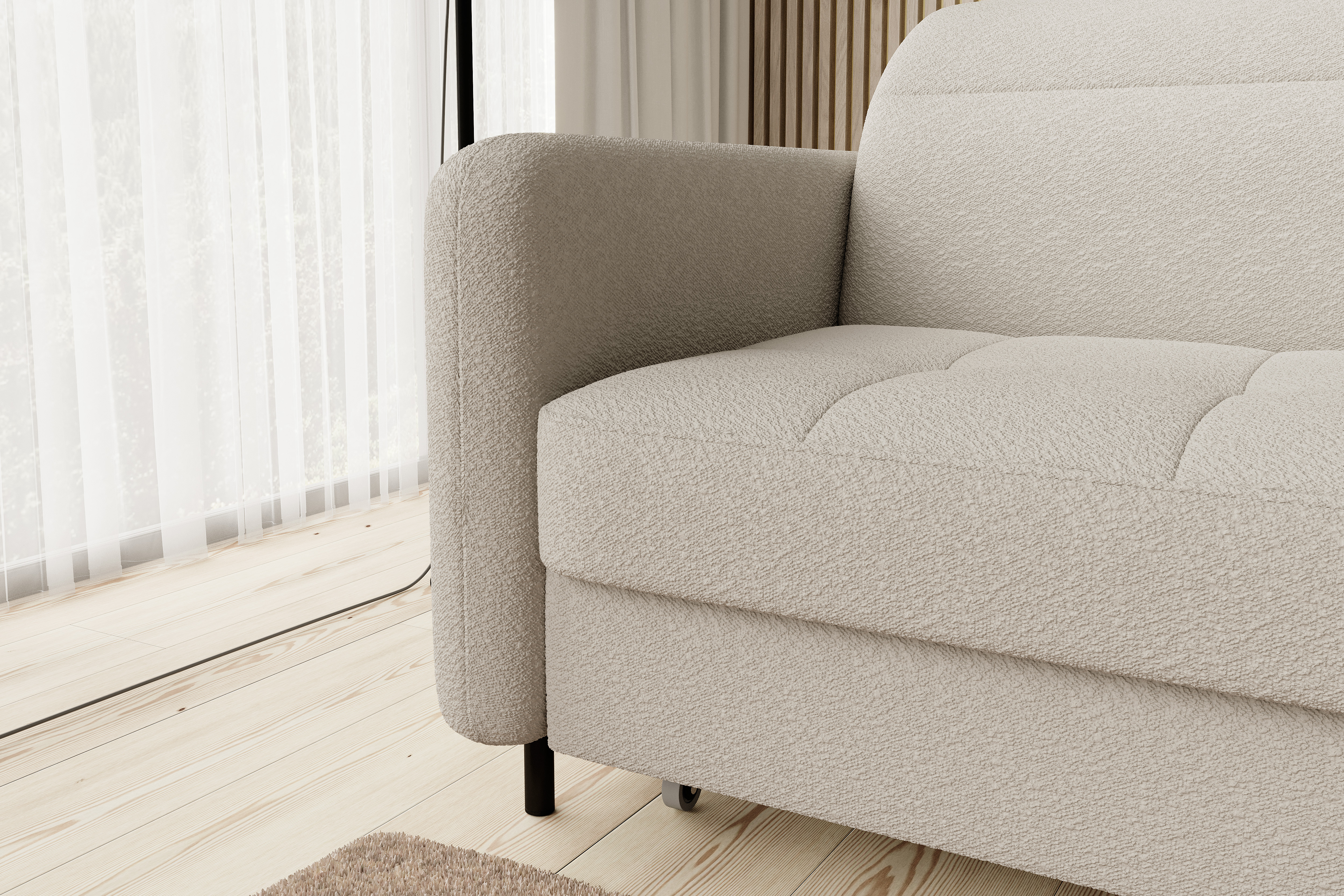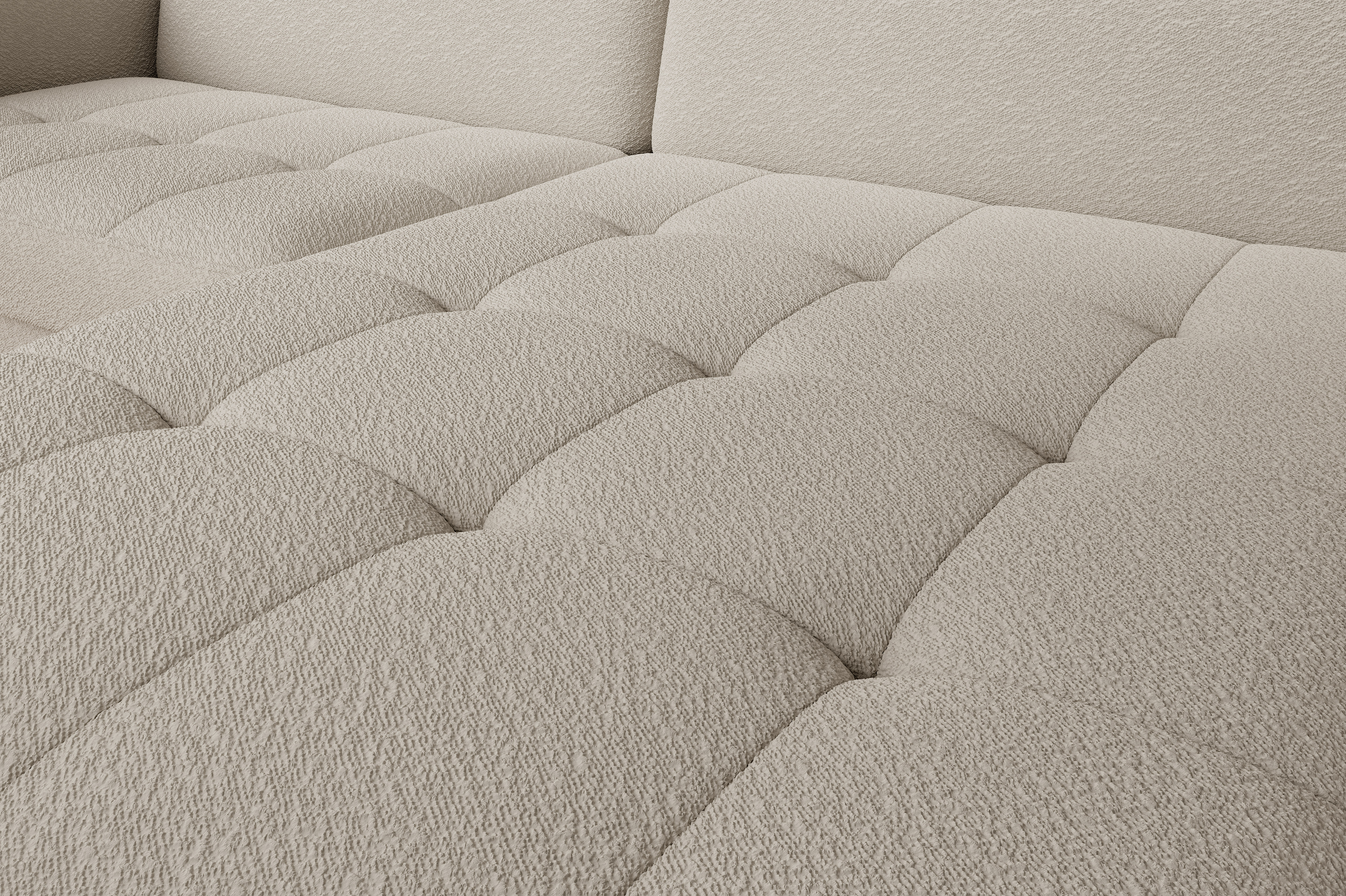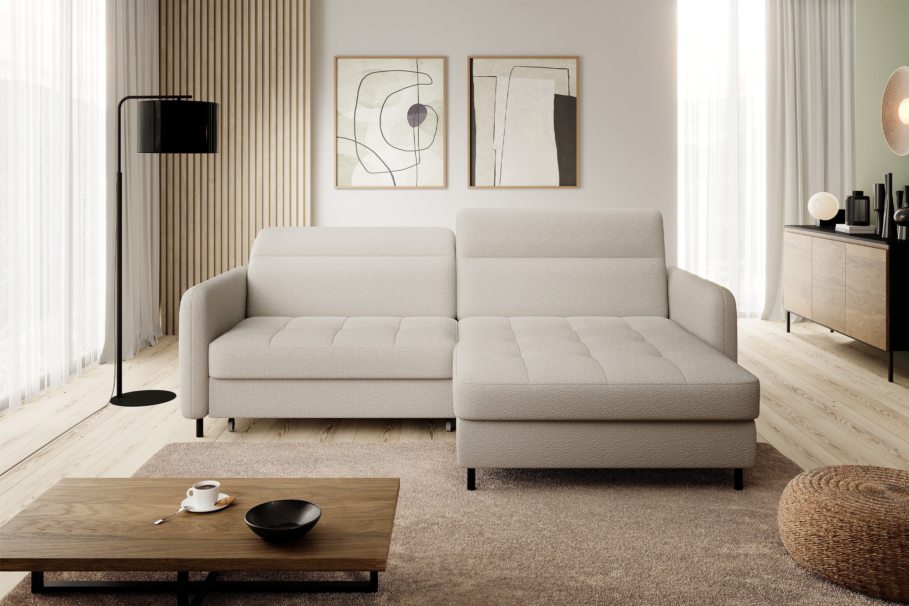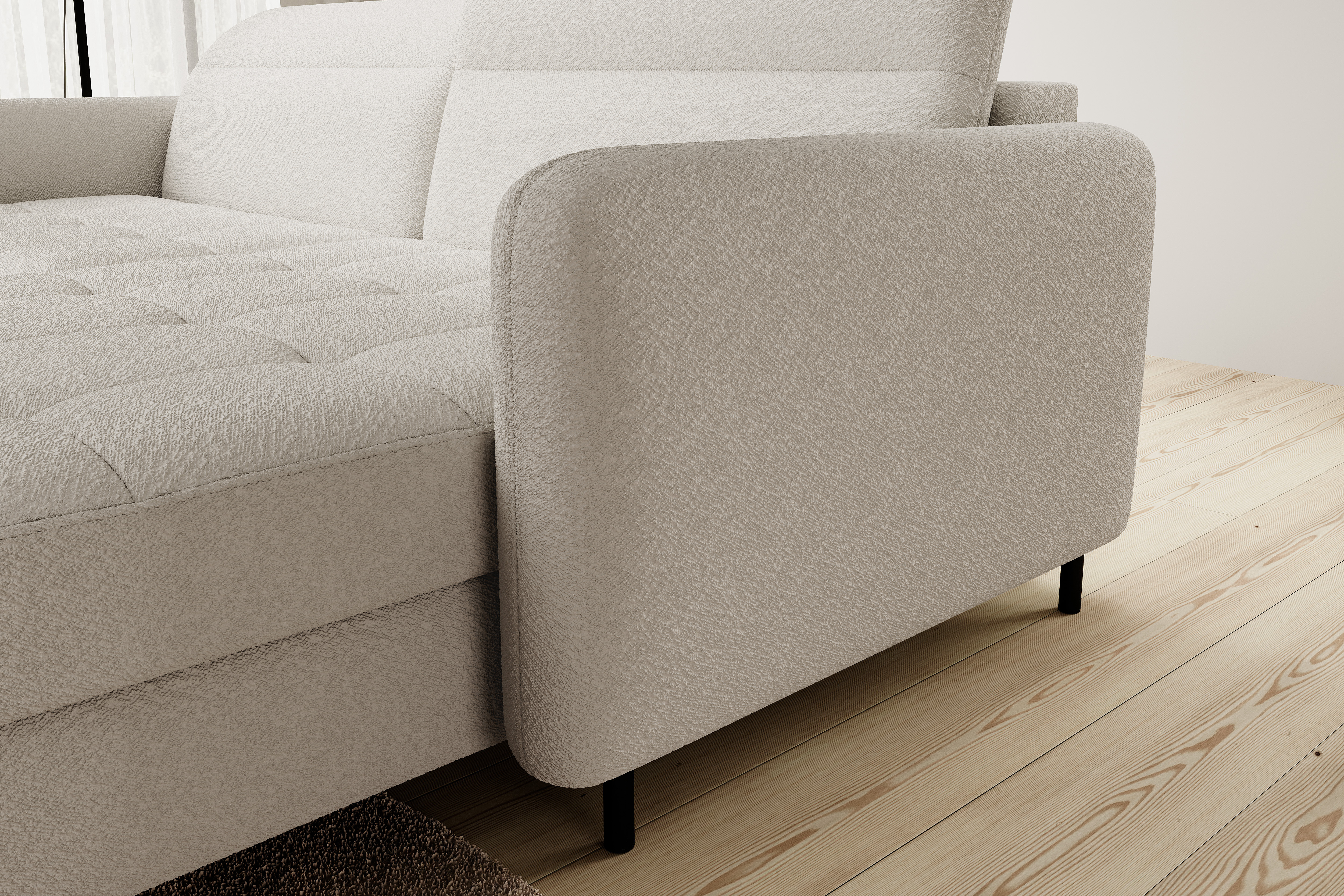 Sedací souprava Gomsi v provedení Royal 18 má rám z borovicového dřeva. Sedadlo je vyplněno elastickou HR pěnou a kvalitními vlnitými pružinami typu B. Pomocí mechanismu DL vznikne spací plocha o rozměru 200x128 cm. Nožky jsou černé kovové o výšce 10 cm. Nosnost soupravy 260 kg. Provedení rohu pravé. Zboží je částečně smontováno.