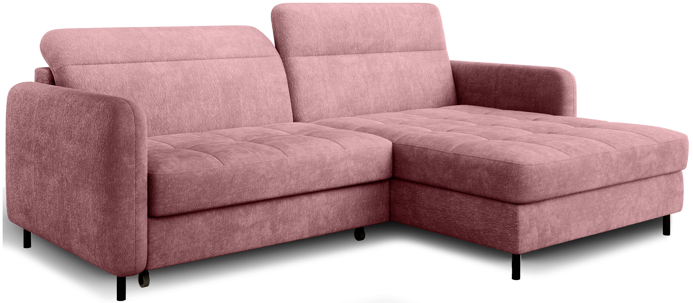Sedací souprava Gomsi v provedení Touch 03 má rám z borovicového dřeva. Sedadlo je vyplněno elastickou HR pěnou a kvalitními vlnitými pružinami typu B. Pomocí mechanismu DL vznikne spací plocha o rozměru 200x128 cm. Nožky jsou černé kovové o výšce 10 cm. Nosnost soupravy 260 kg. Provedení rohu pravé. Zboží je částečně smontováno.