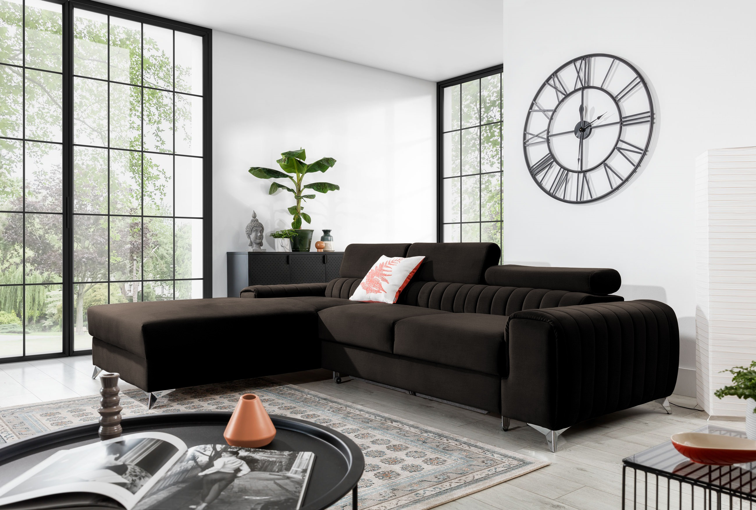 Sedací souprava Grayson v provedení Nube 22 má rám z borovicového dřeva. Sedadlo je vyplněno elastickou HR pěnou a pěnou T30. Pomocí mechanismu DL vznikne spací plocha o rozměru 125x216 cm. Disponuje úložným prostorem. Nožky jsou stříbrné kovové o výšce 9 cm. Nosnost soupravy 315 kg. Provedení rohu levé. Zboží je částečně smontováno.