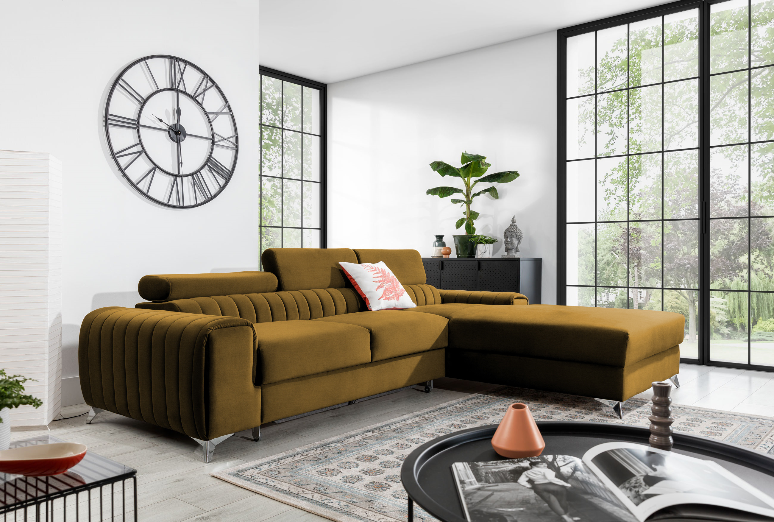 Sedací souprava Grayson v provedení Nube 45 má rám z borovicového dřeva. Sedadlo je vyplněno elastickou HR pěnou a pěnou T30. Pomocí mechanismu DL vznikne spací plocha o rozměru 125x216 cm. Disponuje úložným prostorem. Nožky jsou stříbrné kovové o výšce 9 cm. Nosnost soupravy 315 kg. Provedení rohu pravé. Zboží je částečně smontováno.