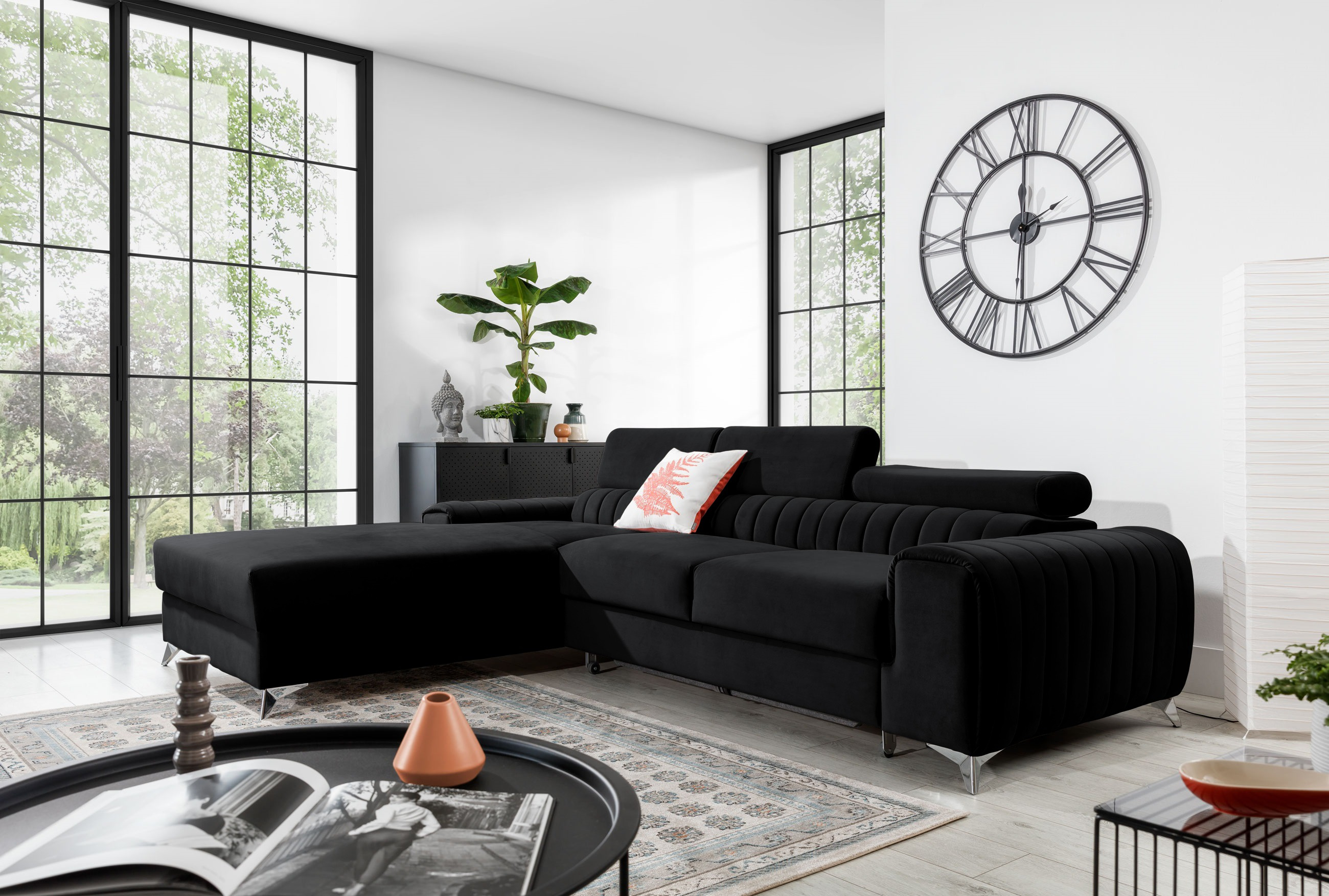 Sedací souprava Grayson v provedení Velvetmat 10 má rám z borovicového dřeva. Sedadlo je vyplněno elastickou HR pěnou a pěnou T30. Pomocí mechanismu DL vznikne spací plocha o rozměru 125x216 cm. Disponuje úložným prostorem. Nožky jsou stříbrné kovové o výšce 9 cm. Nosnost soupravy 315 kg. Provedení rohu levé. Zboží je částečně smontováno.