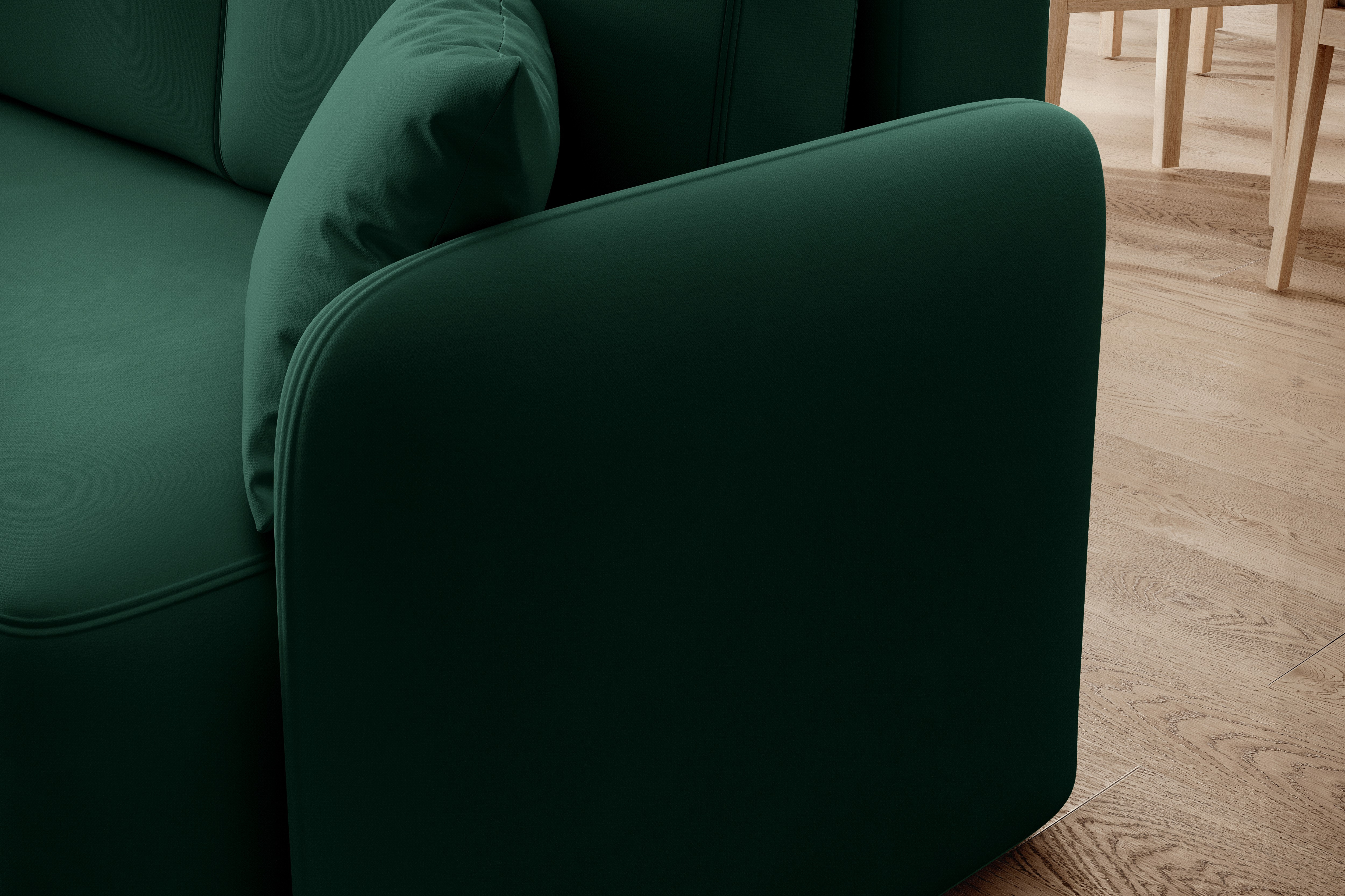 Sedací souprava Hadson v barevném provedení Lukso 35 se sedákem vyplněným vlnovou pružinou typu B a HR pěnou +T3030 a opěrákem vyplněným s pěnou T2540+T2130. Pomocí mechanizmu DL vznikne spací plocha 115x184 cm. Samozřejmostí je úložný prostor. Nožky o výšce 2,5 cm jsou plastové. Nosnost 270 kg.