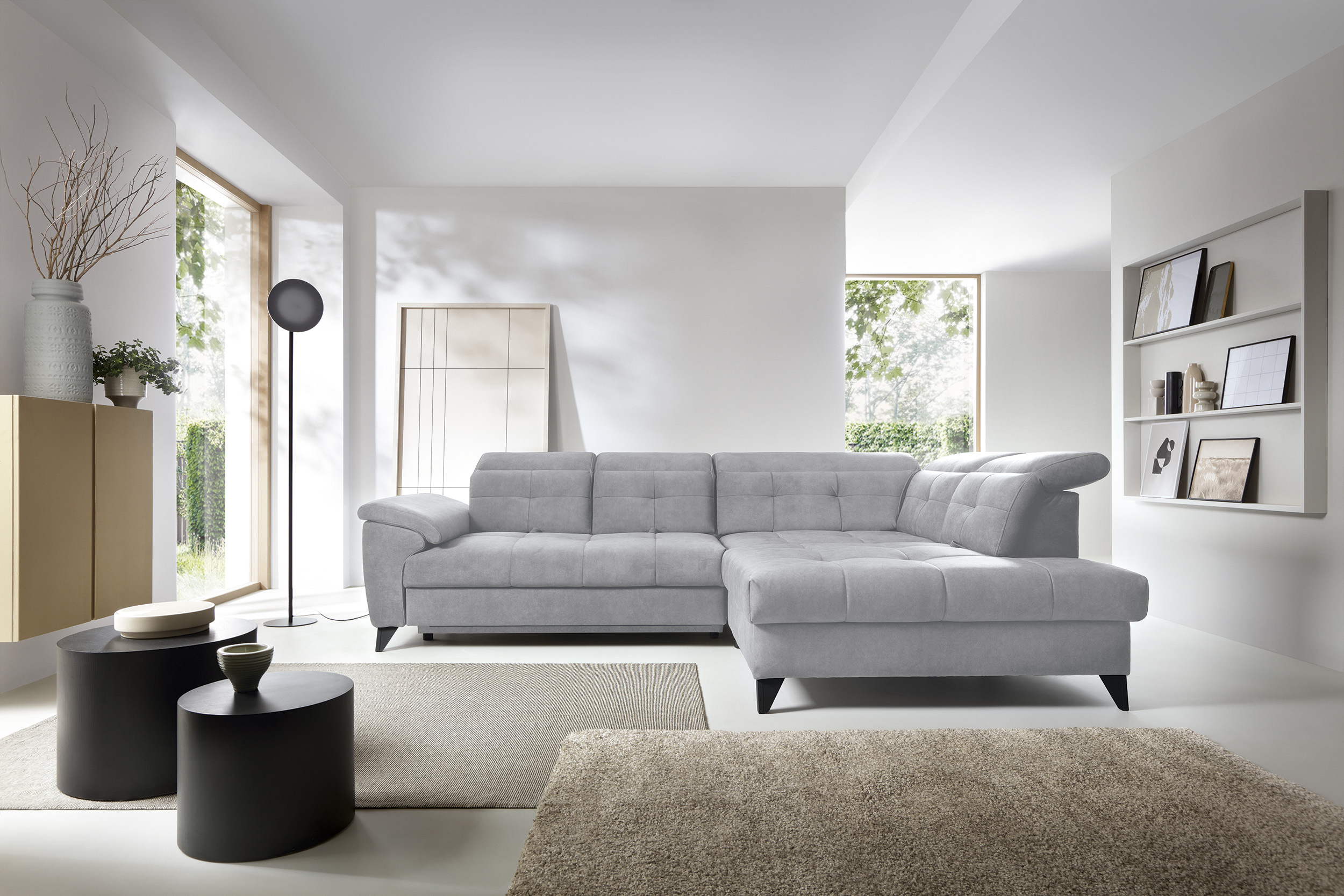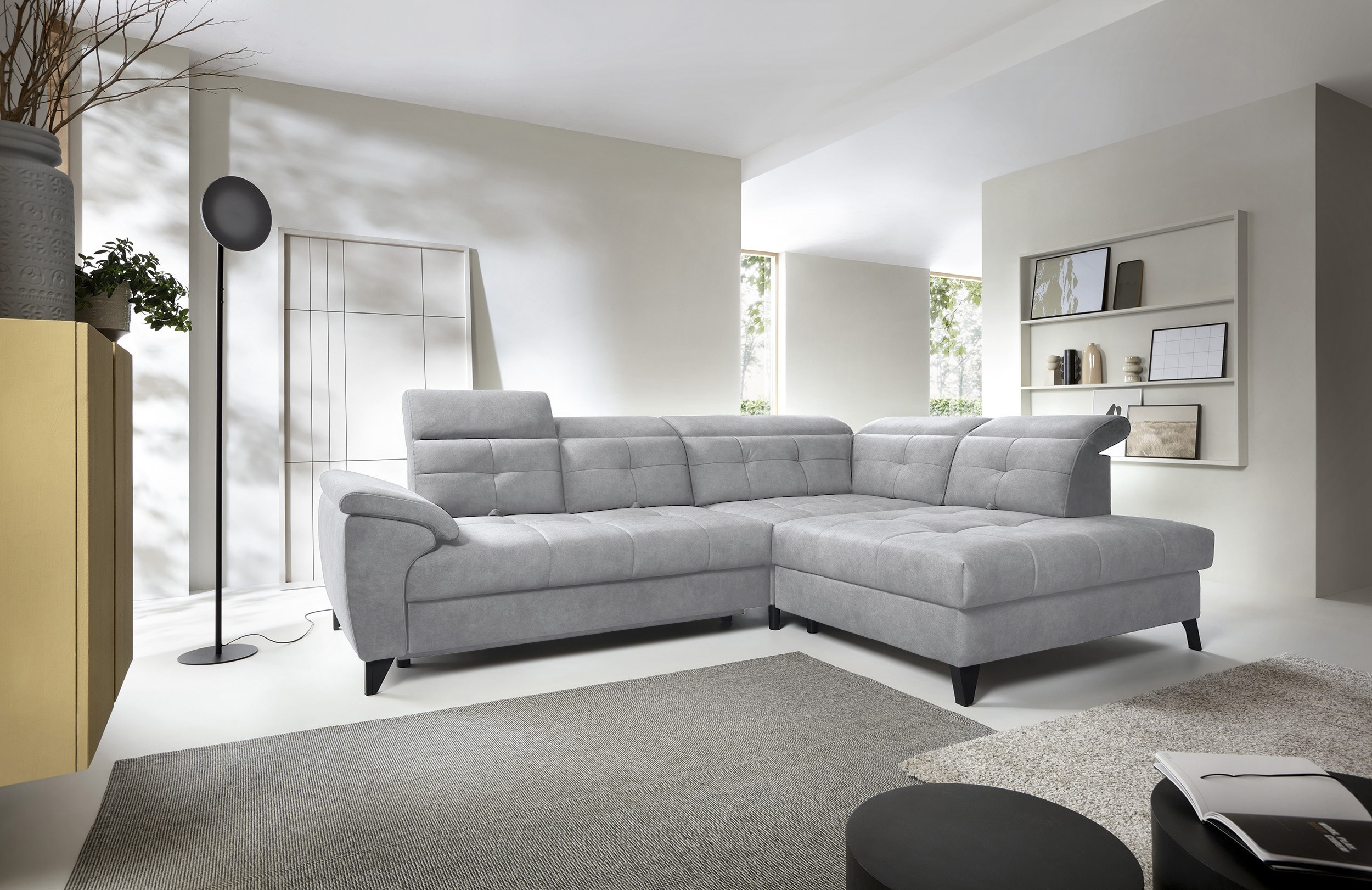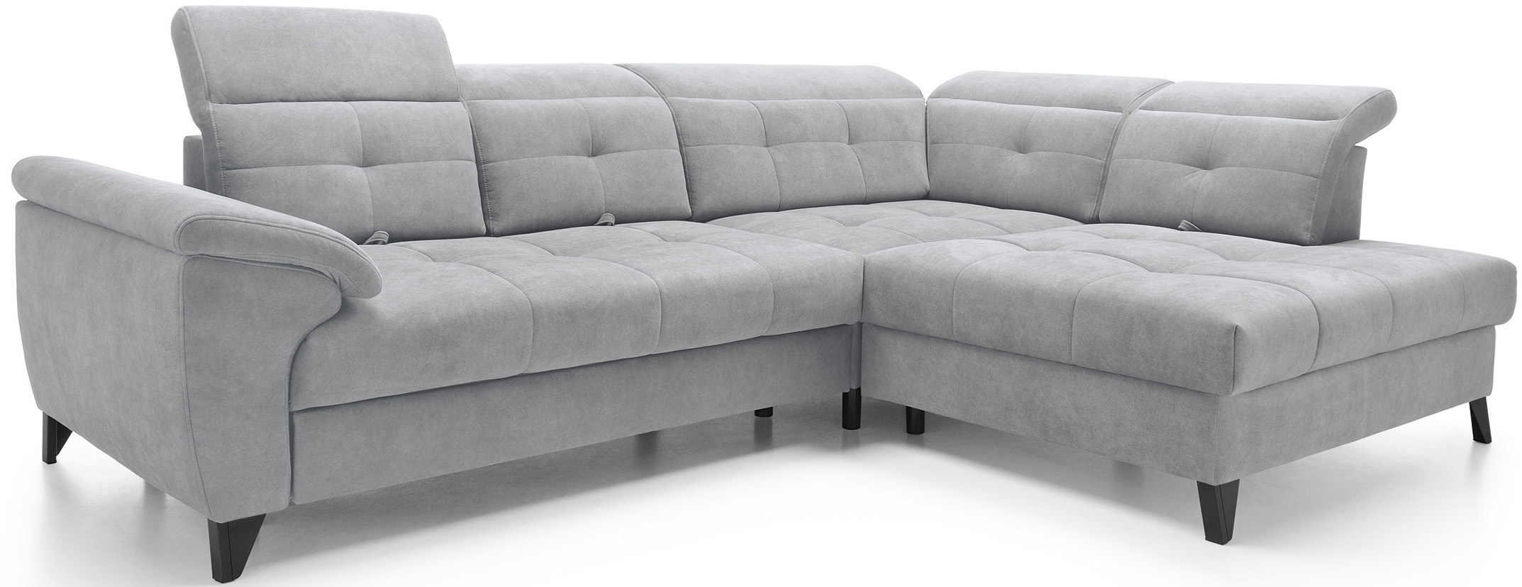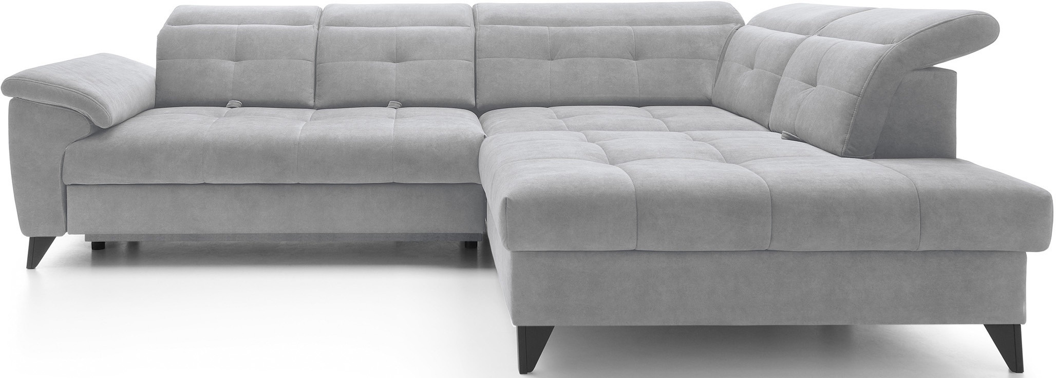 Sedací souprava Inferne v provedení Aura 04 má rám z borovicového dřeva. Sedák má vyplněn pružinami typu B a vysoce elastickou pěnou HR + T2130. Opěradlo je vyplněno pěnou T2130 a čalouněnými popruhy. Pomocí rozkladu vznikne spací plocha 225x128 cm. Disponuje úložným prostorem. Nosnost pohovky 370 kg. Nohy jsou kovové černé o výšce 13 cm. Provedení rohu pravé. Zboží je částečně smontováno.