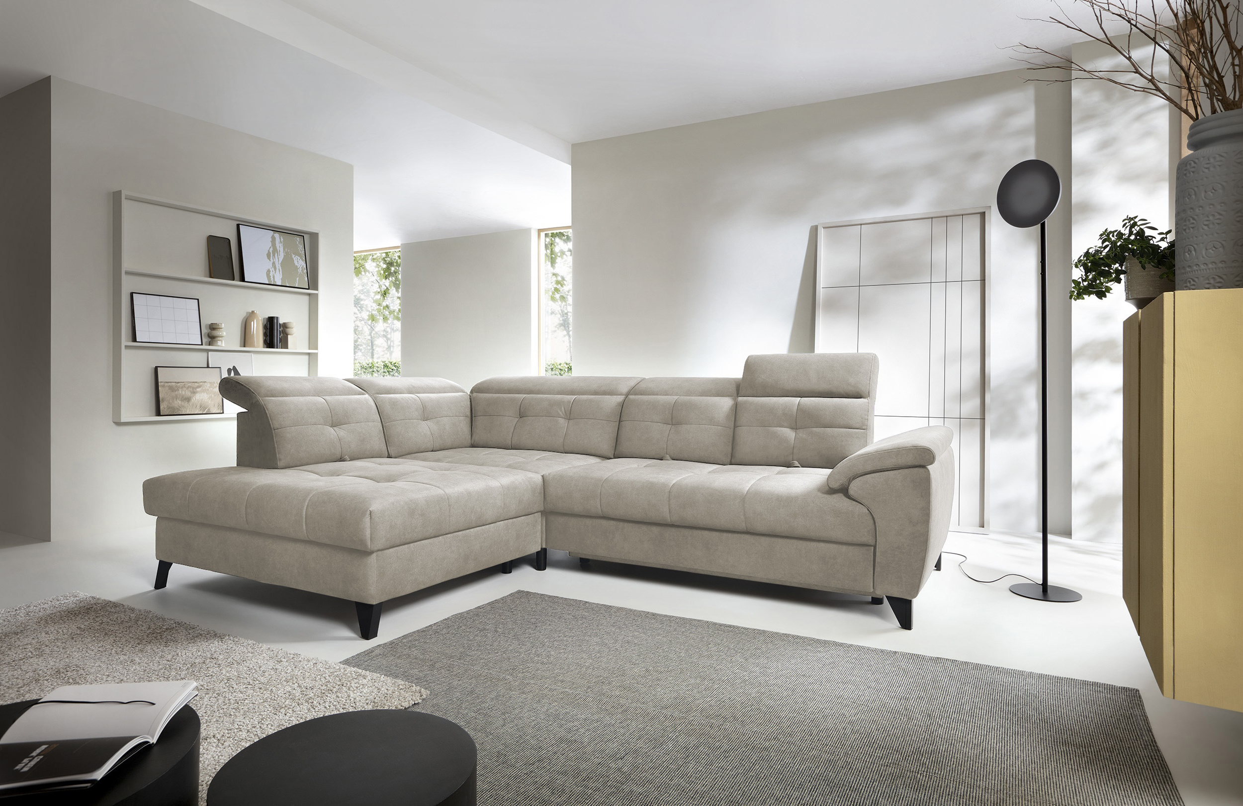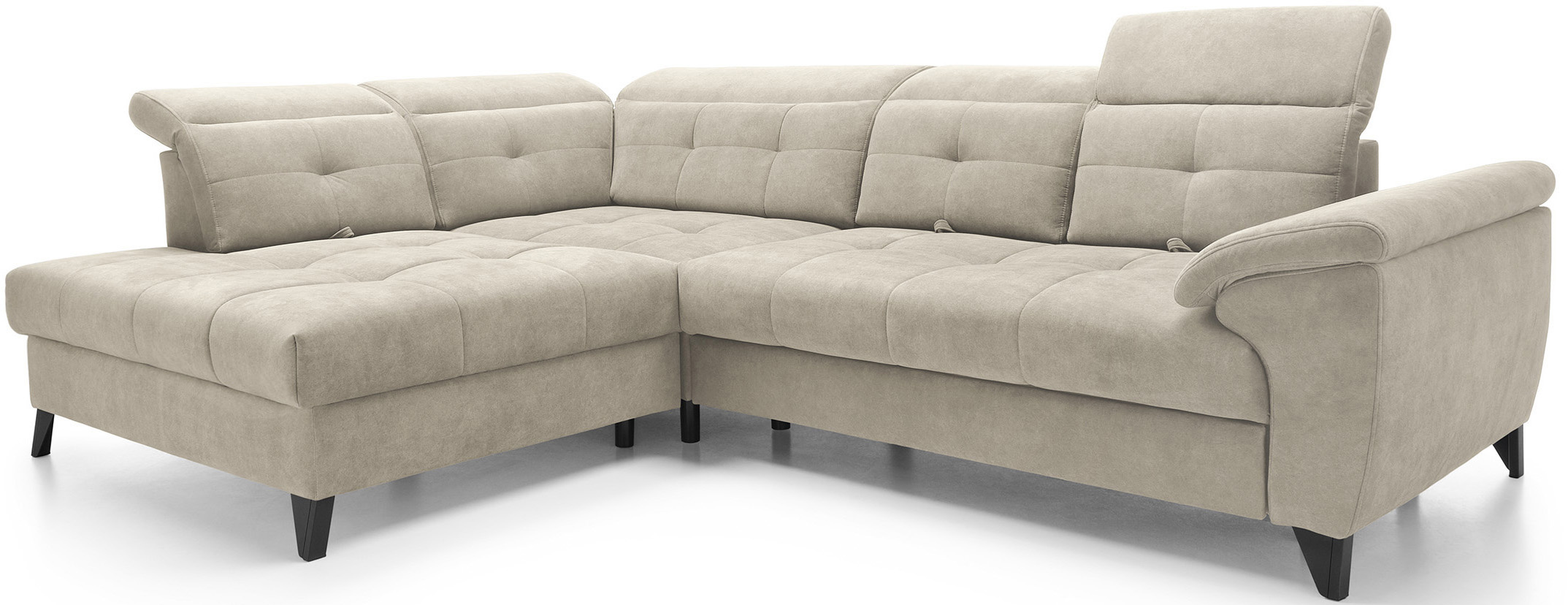 Sedací souprava Inferne v provedení Aura 18 má rám z borovicového dřeva. Sedák má vyplněn pružinami typu B a vysoce elastickou pěnou HR + T2130. Opěradlo je vyplněno pěnou T2130 a čalouněnými popruhy. Pomocí rozkladu vznikne spací plocha 225x128 cm. Disponuje úložným prostorem. Nosnost pohovky 370 kg. Nohy jsou kovové černé o výšce 13 cm. Provedení rohu levé. Zboží je částečně smontováno.