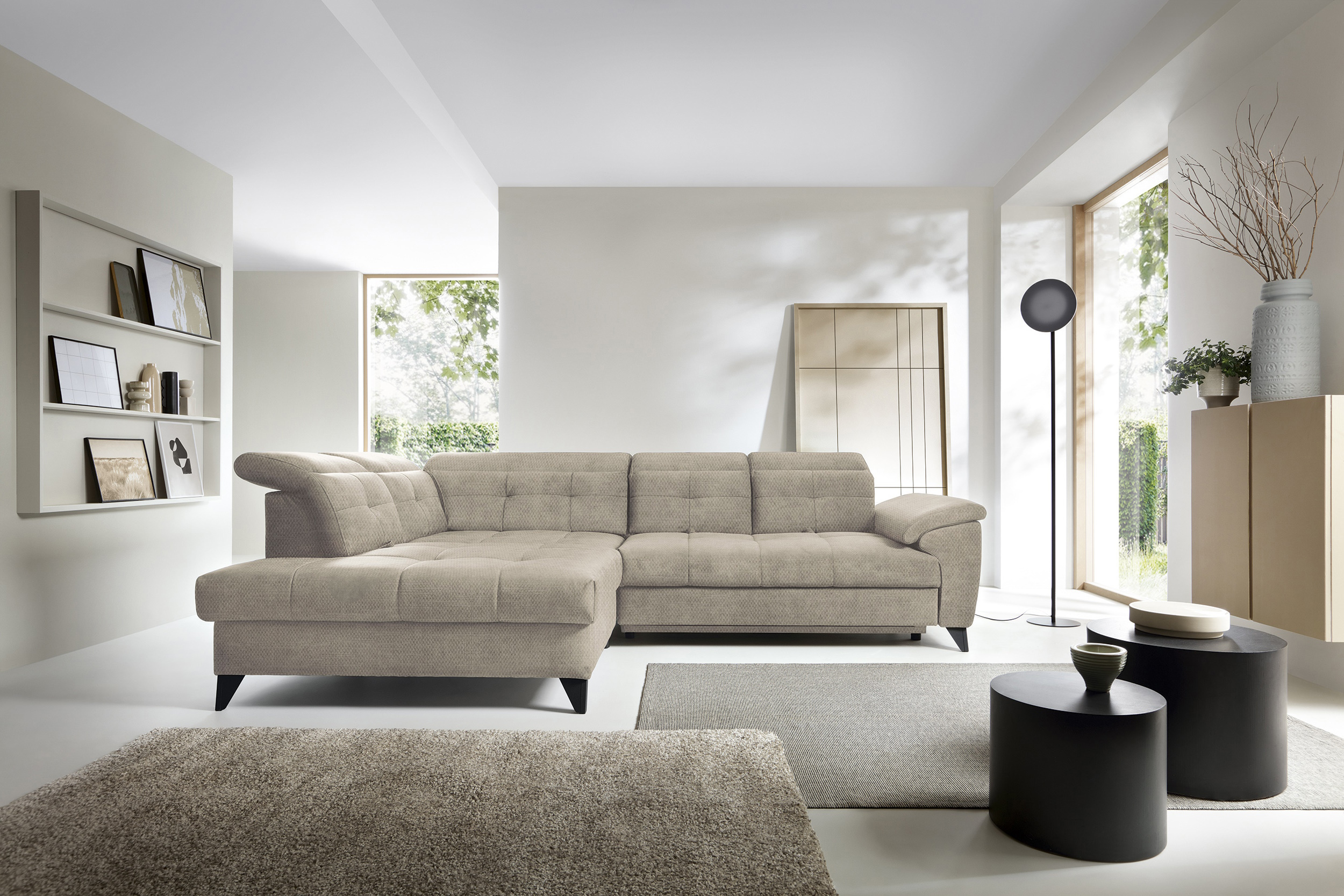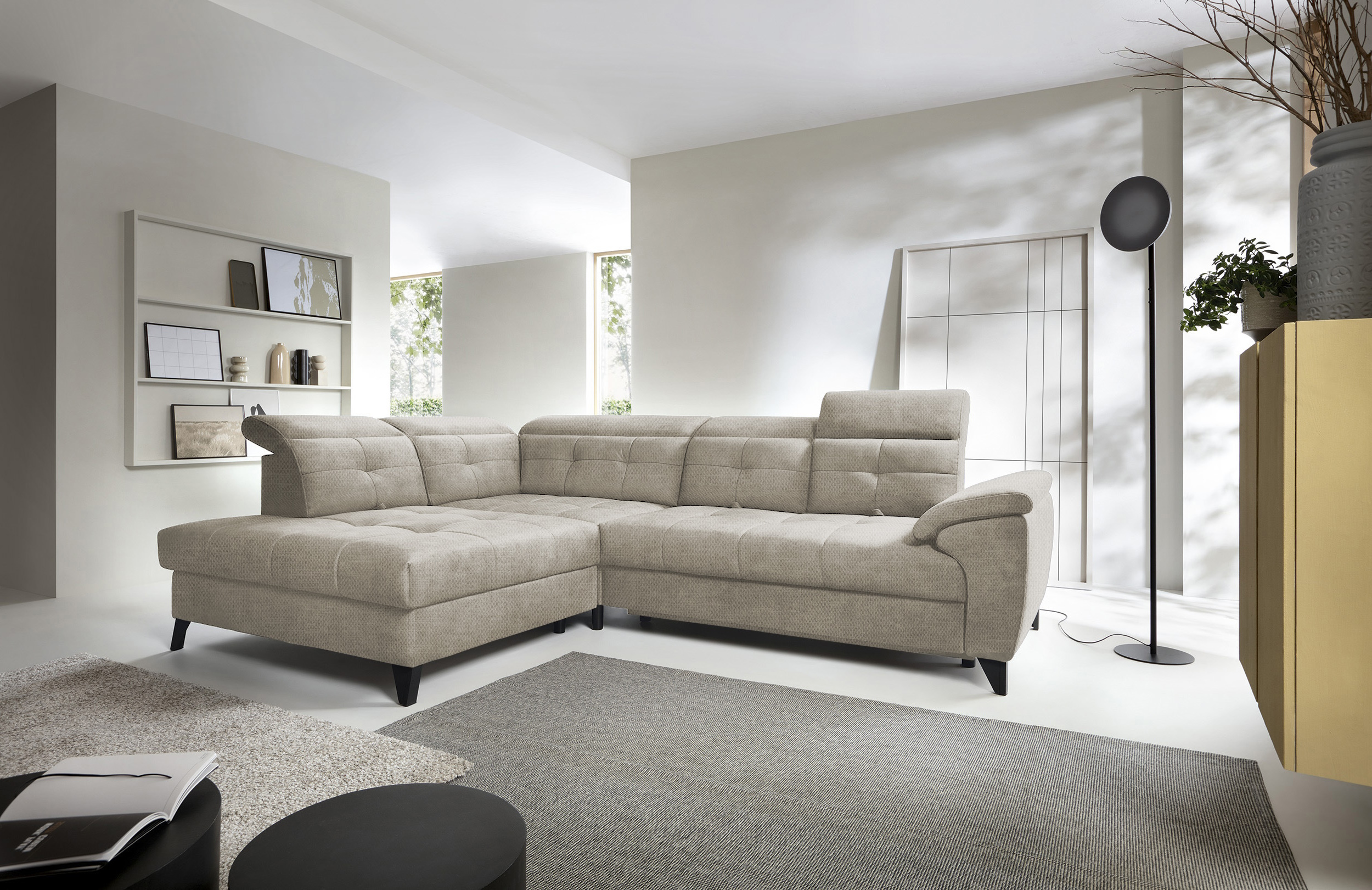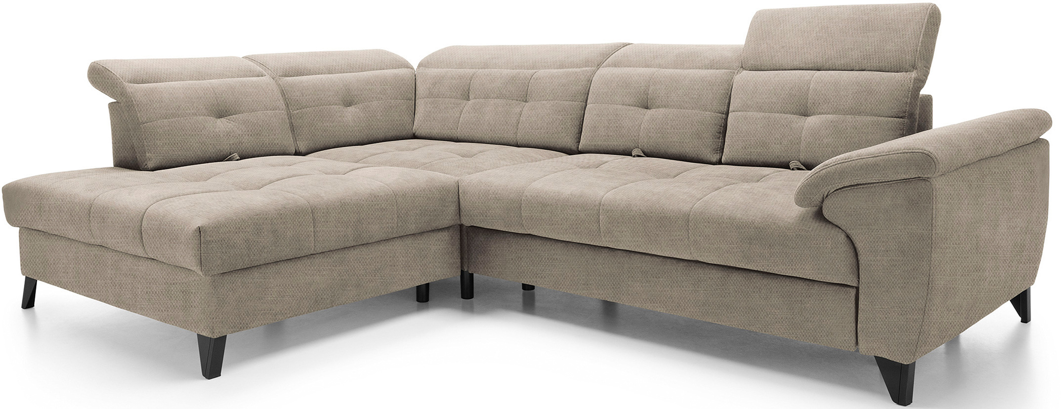 Sedací souprava Inferne v provedení Raquel 20 má rám z borovicového dřeva. Sedák má vyplněn pružinami typu B a vysoce elastickou pěnou HR + T2130. Opěradlo je vyplněno pěnou T2130 a čalouněnými popruhy. Pomocí rozkladu vznikne spací plocha 225x128 cm. Disponuje úložným prostorem. Nosnost pohovky 370 kg. Nohy jsou kovové černé o výšce 13 cm. Provedení rohu levé. Zboží je částečně smontováno.