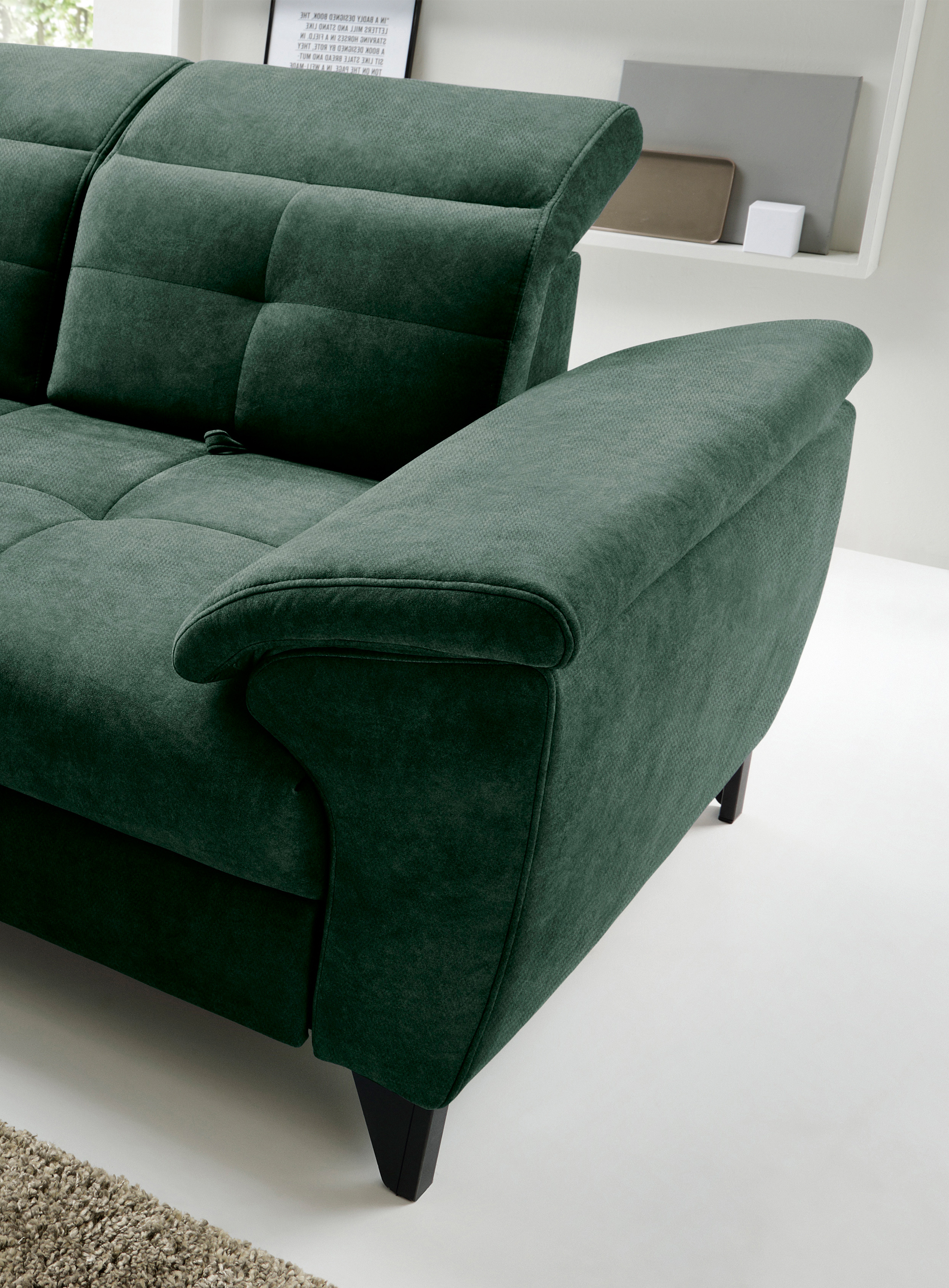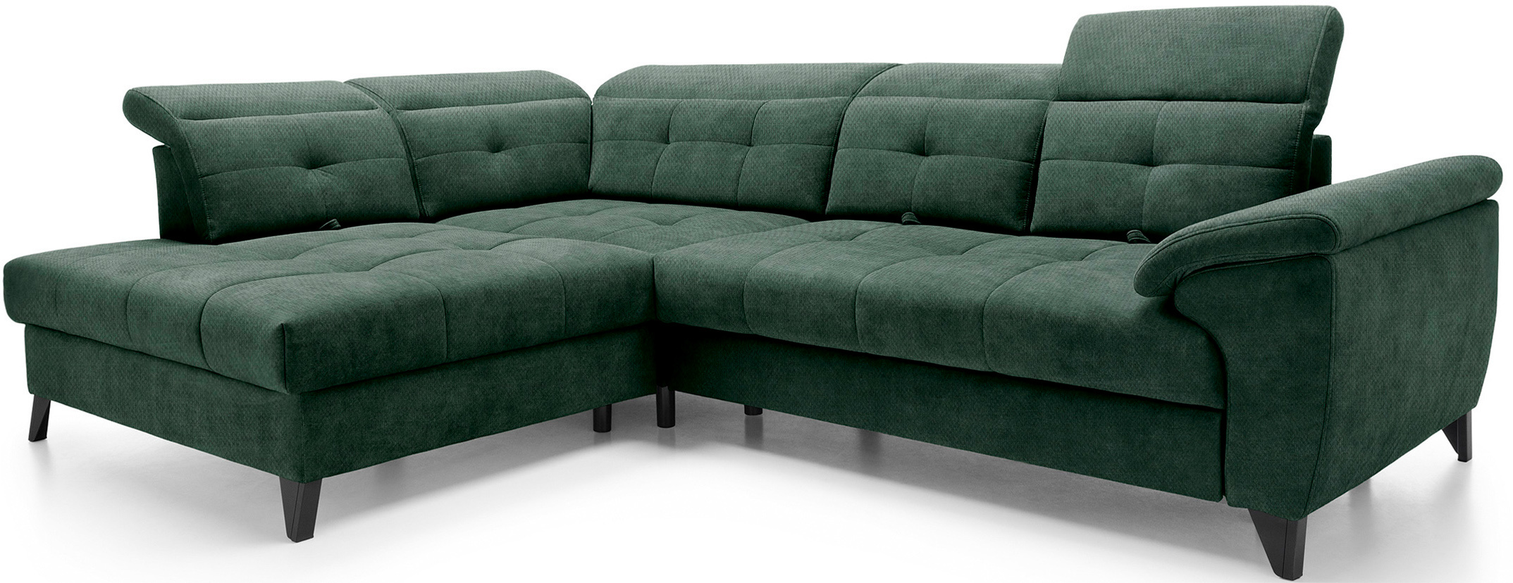 Sedací souprava Inferne v provedení Raquel 35 má rám z borovicového dřeva. Sedák má vyplněn pružinami typu B a vysoce elastickou pěnou HR + T2130. Opěradlo je vyplněno pěnou T2130 a čalouněnými popruhy. Pomocí rozkladu vznikne spací plocha 225x128 cm. Disponuje úložným prostorem. Nosnost pohovky 370 kg. Nohy jsou kovové černé o výšce 13 cm. Provedení rohu levé. Zboží je částečně smontováno.