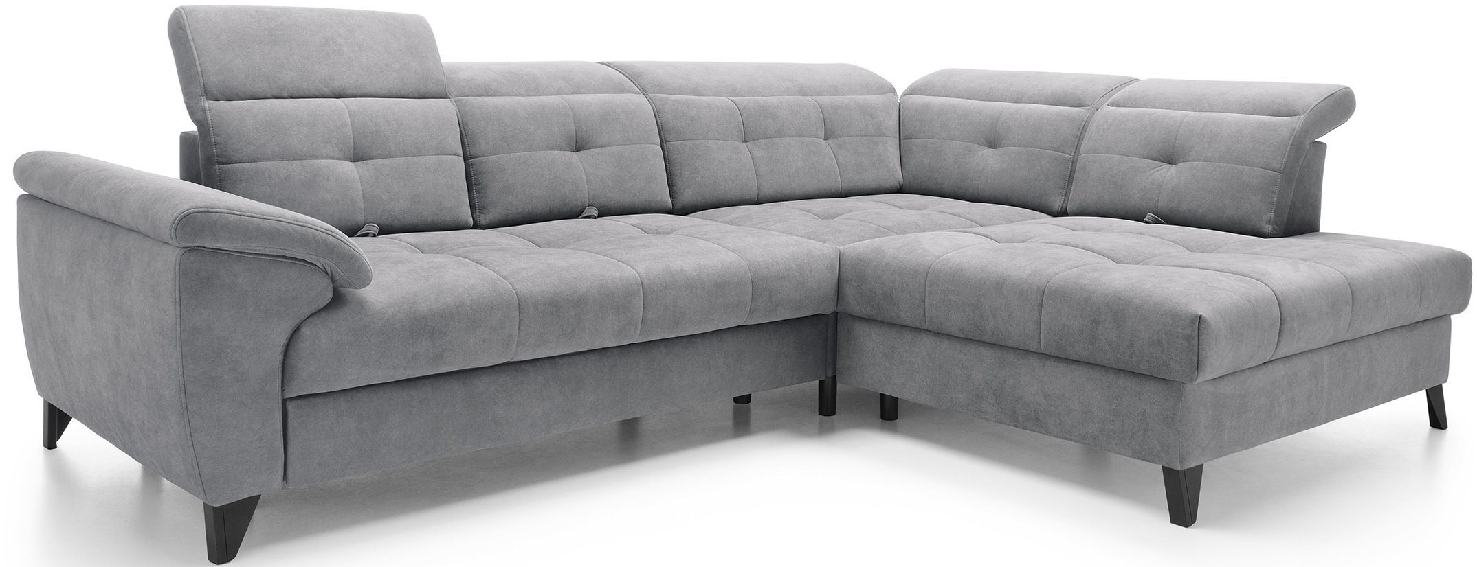 Sedací souprava Inferne v provedení Relax 04 má rám z borovicového dřeva. Sedák má vyplněn pružinami typu B a vysoce elastickou pěnou HR + T2130. Opěradlo je vyplněno pěnou T2130 a čalouněnými popruhy. Pomocí rozkladu vznikne spací plocha 225x128 cm. Disponuje úložným prostorem. Nosnost pohovky 370 kg. Nohy jsou kovové černé o výšce 13 cm. Provedení rohu pravé. Zboží je částečně smontováno.