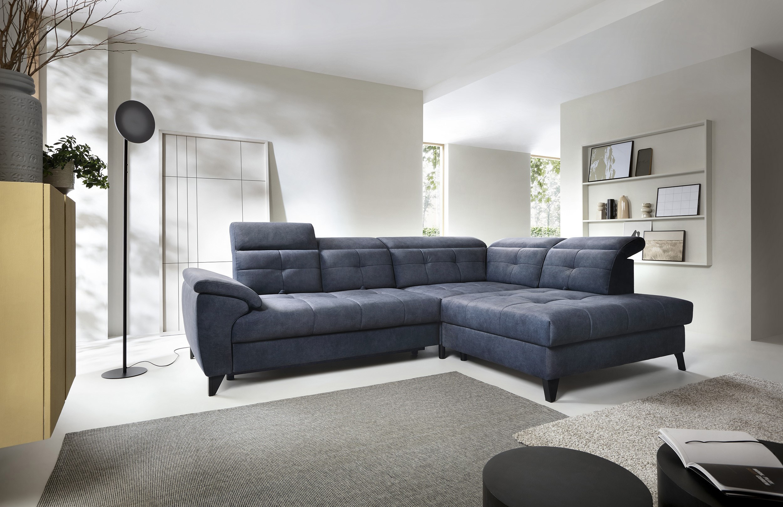 Sedací souprava Inferne v provedení Relax 40 má rám z borovicového dřeva. Sedák má vyplněn pružinami typu B a vysoce elastickou pěnou HR + T2130. Opěradlo je vyplněno pěnou T2130 a čalouněnými popruhy. Pomocí rozkladu vznikne spací plocha 225x128 cm. Disponuje úložným prostorem. Nosnost pohovky 370 kg. Nohy jsou kovové černé o výšce 13 cm. Provedení rohu pravé. Zboží je částečně smontováno.