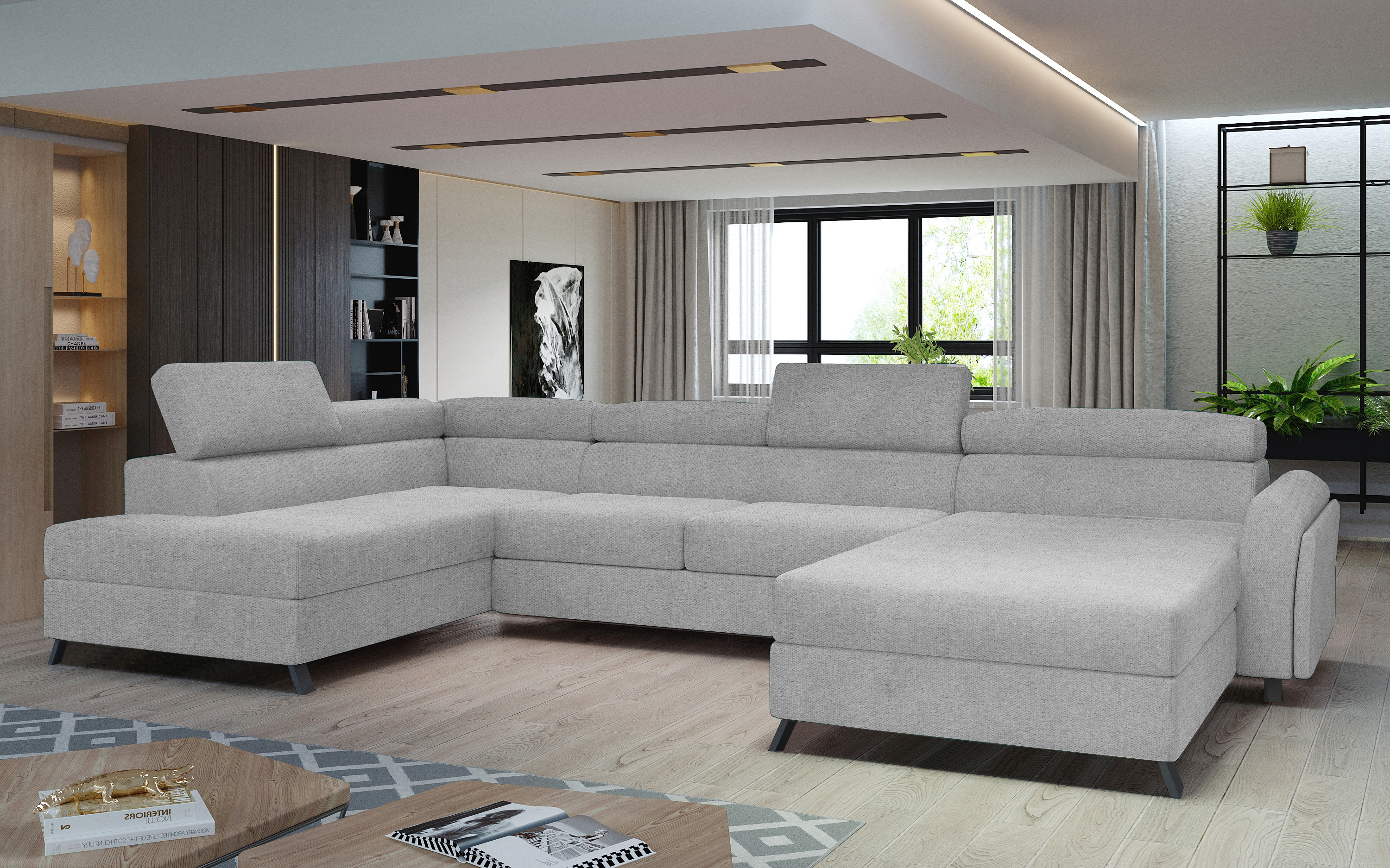 Sedací souprava Josette v provedení Grande 81 má rám z borovicového dřeva. Sedadlo je vyplněno vlnitou pružinou a vysoce kvalitní elastickou pěnou T30. Pomocí mechanismu DL vznikne spací plocha o rozměru 110x300 cm. Nožky jsou černé o výšce 9 cm.. Disponuje úložným prostorem. Nosnost soupravy 405 kg. Provedení rohu levé. Dekorační polštáře jsou součástí. Zboží je částečně smontováno.