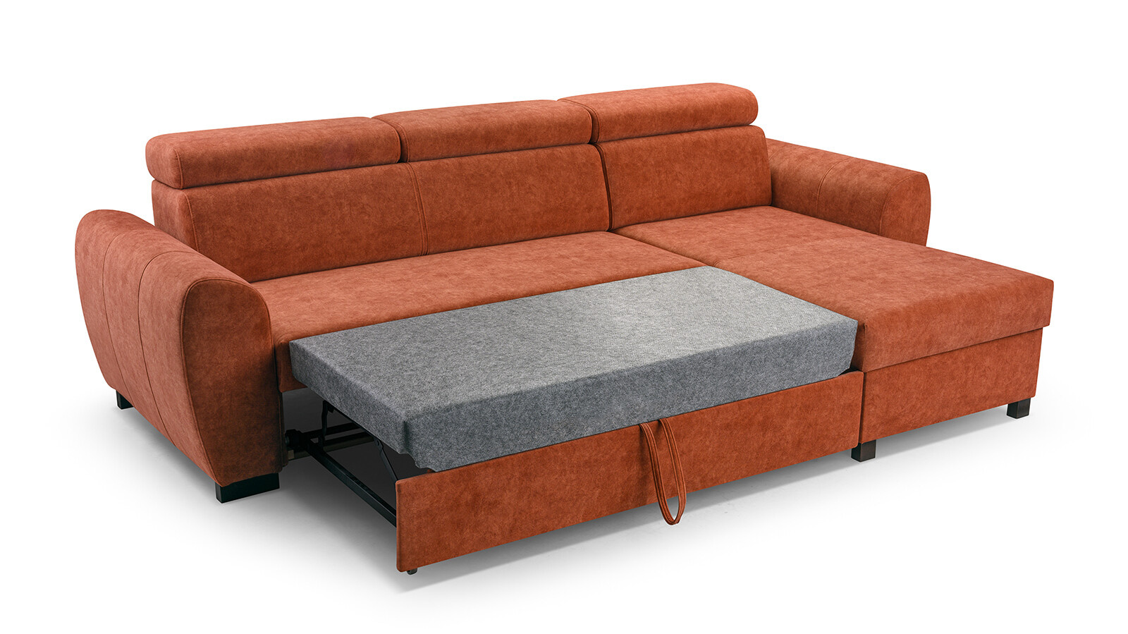 Sedací souprava LAGUNA luxs úložným prostorem. Rozkladem vznikne spací plocha 225 x 125 cm pro občasné přespání. Nohy soupravy jsou kovové. Rohová sedací souprava má univerzální provedení, díky kterému nemusíme před nákupem volit stranu. Možnost výběru různých potahových látek. Foto je pouze ilustrační.