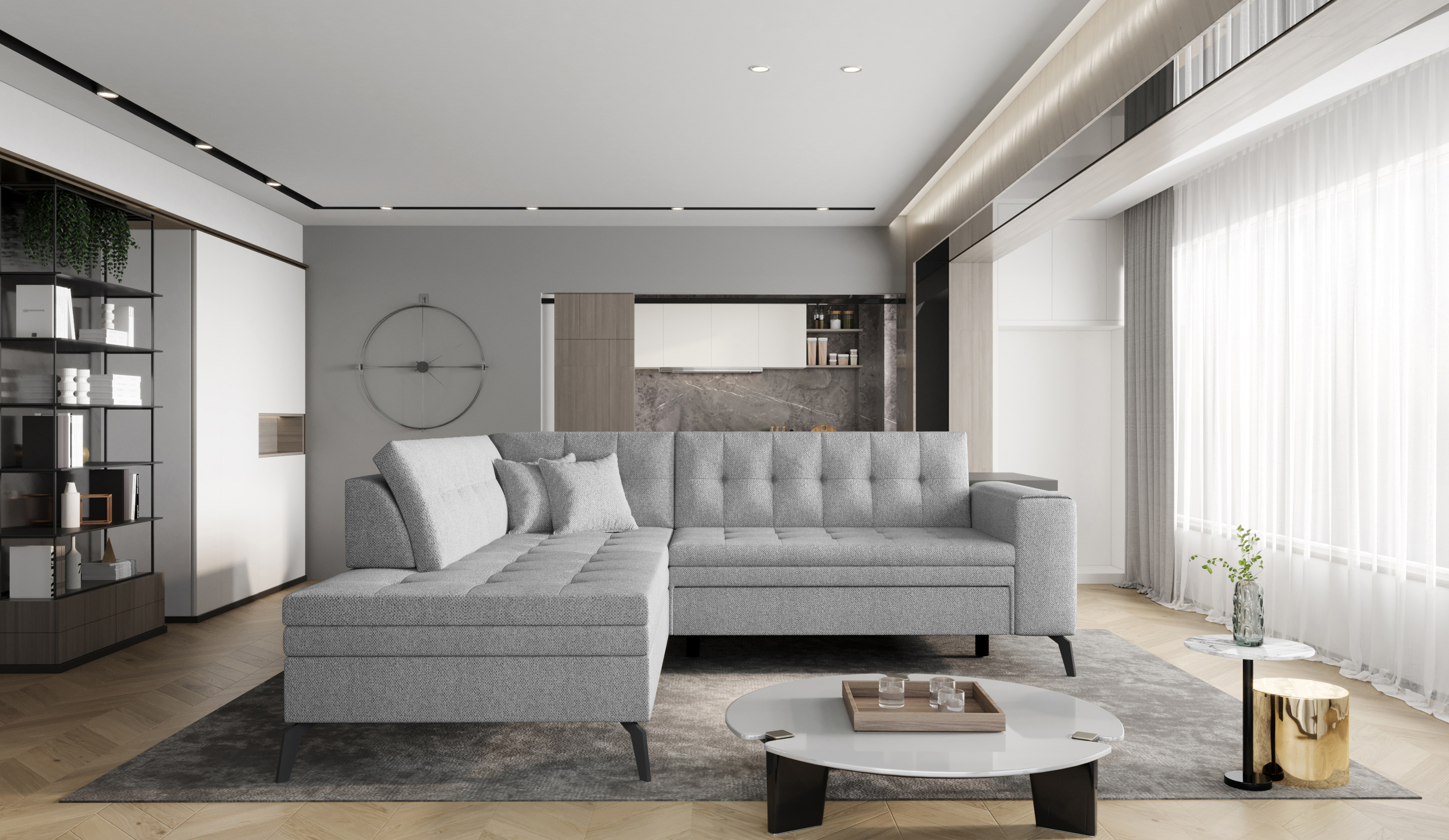 Sedací souprava Lanvin v dezénu Borneo 4 má sedák vyplněný pěnou T3040 a opěradlo vyplněno pěnou T2542. Látka Borneo: jemně tkaná a na dotek příjemná látka, vysoká odolnost vůči světlu, voděodolná. Konstrukce soupravy z kombinace dřeva a dřevotřískové desky. Rozkladem vznikne spací plocha 125x195 cm. Kombinance kovových a plastových nožiček. Sedací souprava nemá uložný prostor. Výška nohy 9 cm. Provedení levé.