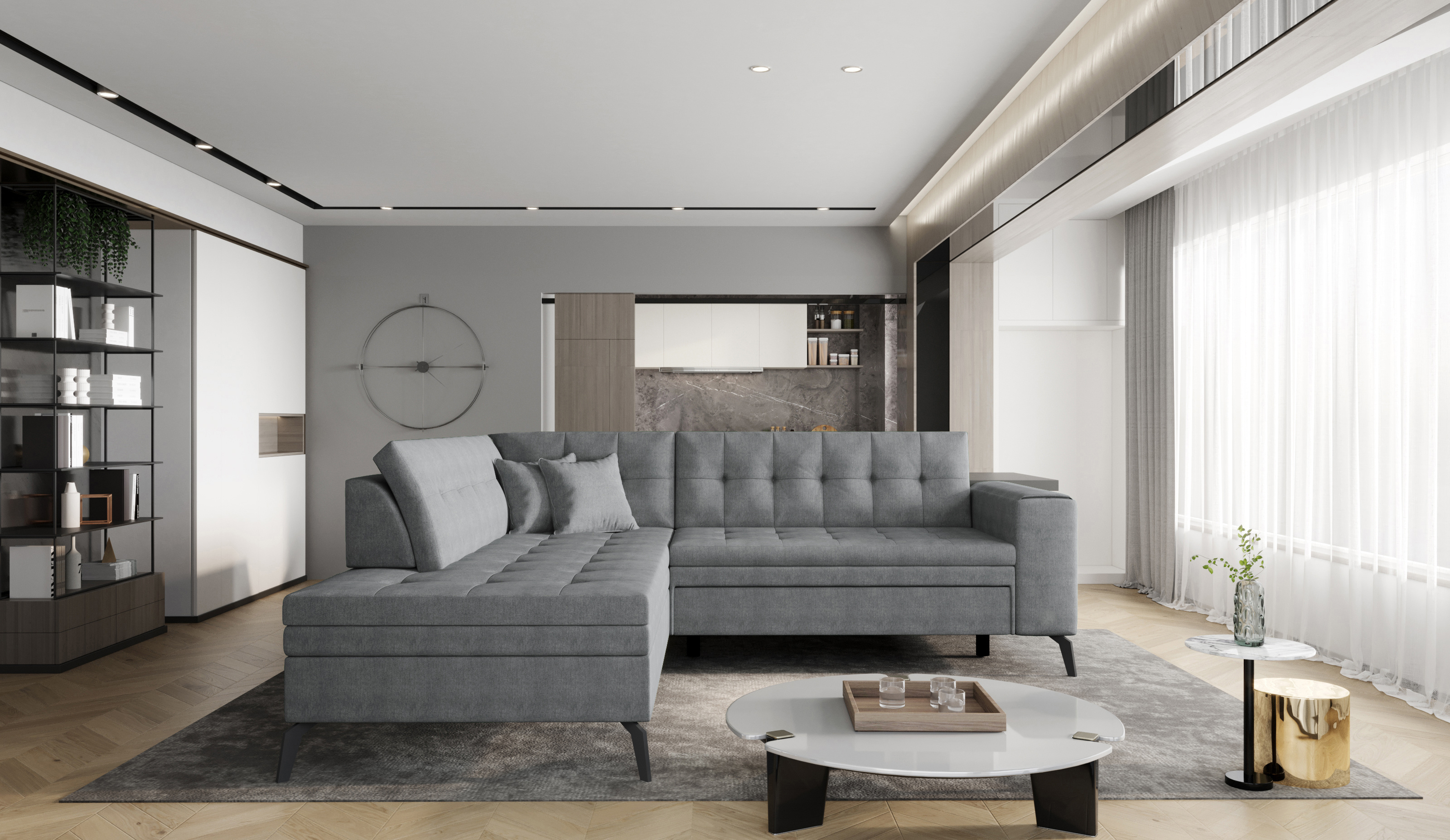 Sedací souprava Lanvin v dezénu Gojo 5 má sedák vyplněný pěnou T3040 a opěradlo vyplněno pěnou T2542. Látka Gojo:  vysoká odolnost vůči dennímu světlu, nevybledne a zachová si původní barvy, nevytváří stínový vzhled, hedvábný vzhled. Konstrukce soupravy z kombinace dřeva a dřevotřískové desky. Rozkladem vznikne spací plocha 125x195 cm. Kombinance kovových a plastových nožiček. Sedací souprava nemá uložný prostor. Výška nohy 9 cm. Provedení levé.