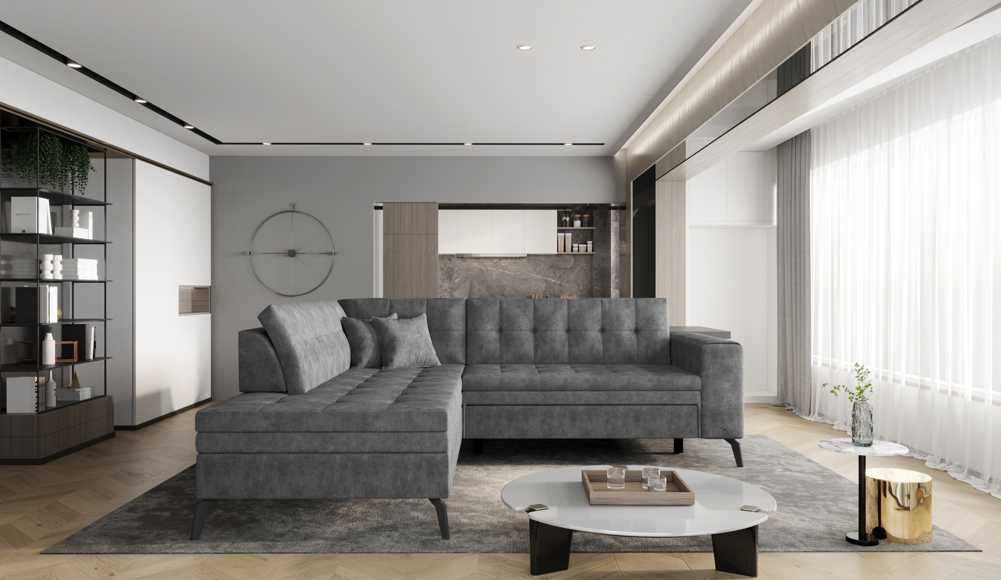 Sedací souprava Lanvin v dezénu Leve 6 má sedák vyplněný pěnou T3040 a opěradlo vyplněno pěnou T2542. Látka Leve:  příjemná na dotek, imitace přírodní kůže. Konstrukce soupravy z kombinace dřeva a dřevotřískové desky. Rozkladem vznikne spací plocha 125x195 cm. Kombinance kovových a plastových nožiček. Sedací souprava nemá uložný prostor. Výška nohy 9 cm. Provedení levé.