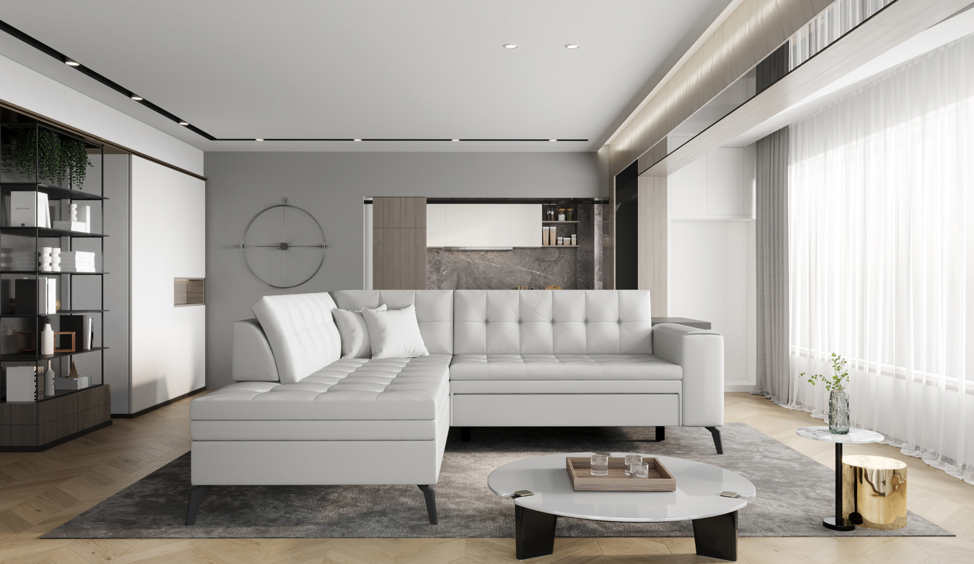 Sedací souprava Lanvin v dezénu Softis 17 má sedák vyplněný pěnou T3040 a opěradlo vyplněno pěnou T2542. Látka Softis:  pevná látka, imitace přírodní kůže, po přejetí rukou nestínuje, její struktura je extrémně měkká a příjemná na dotek. Konstrukce soupravy z kombinace dřeva a dřevotřískové desky. Rozkladem vznikne spací plocha 125x195 cm. Kombinance kovových a plastových nožiček. Sedací souprava nemá uložný prostor. Výška nohy 9 cm. Provedení levé.