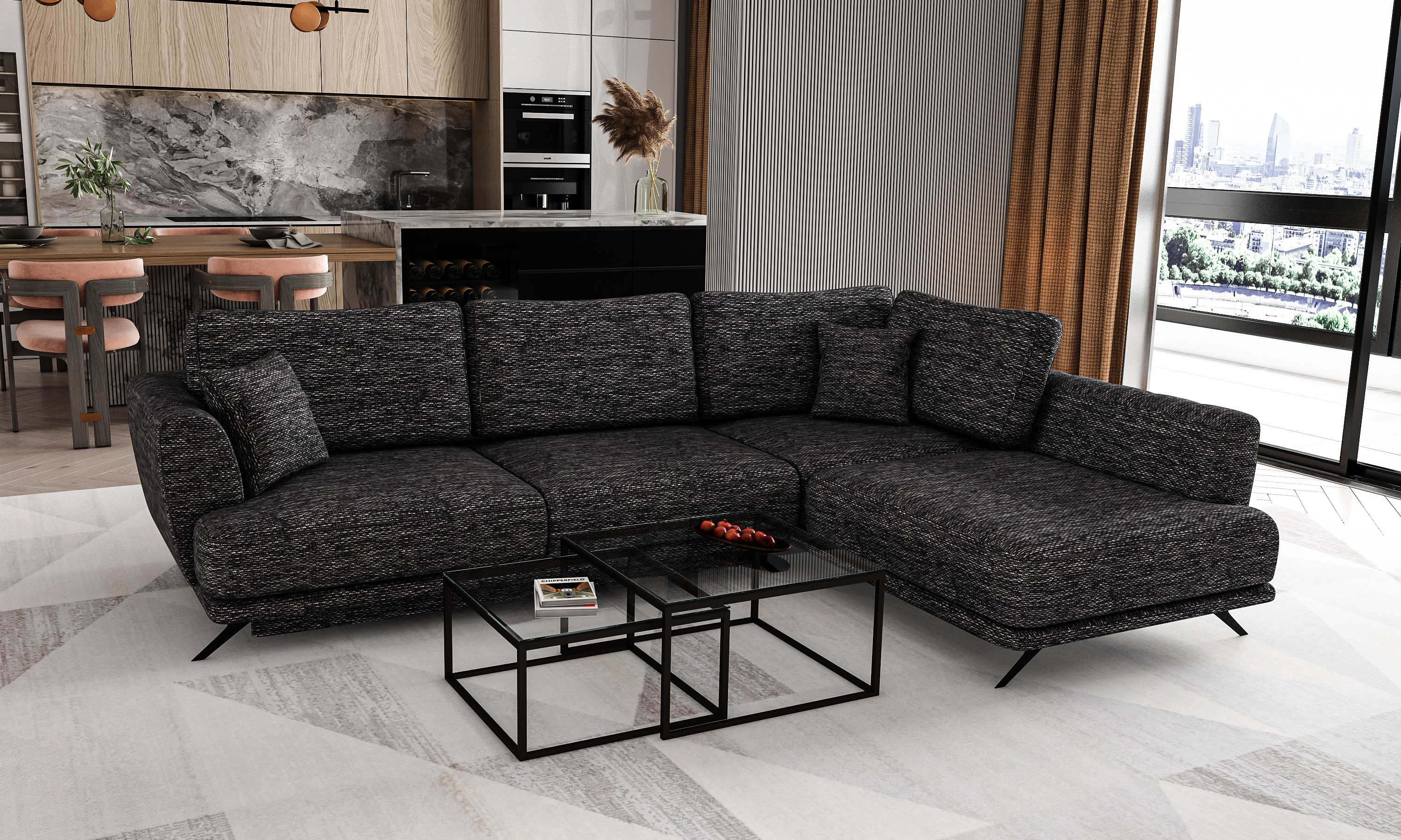 Sedací souprava Larde v dezénu Marte 10 má konstrukci v kombinaci dřeva a dřevotřískové desky. Sedáky jsou vyplněny HR pěnou. Potahová látka Marte: pevná látka s výraznou strukturou vláken, které vytvářejí mozaiku prostupujících barev a je příjemná na dotek. Souprava má velké volně ložné polštáře a čalouněná záda. Díky rozkladu vnikne ložná plocha 140x241 cm. Samozřejmostí je úložný prostor. Souprava stojí na kovových nožkách o výšce 12 cm. Uvedená cena včetně dekoračních polštářků.