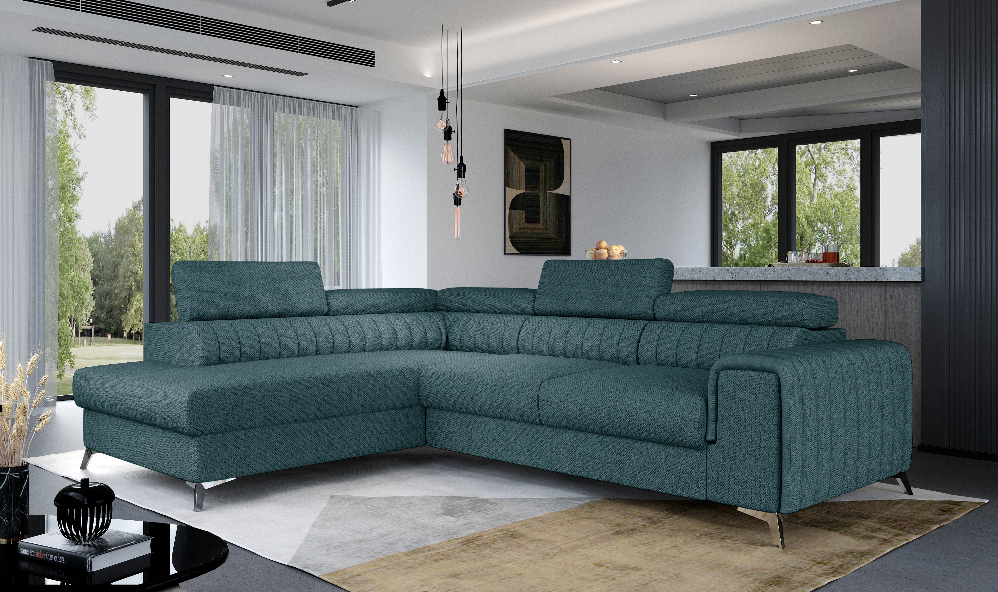Sedací souprava Laurence v dezénu Grande 75 má zádovou opěrku vyplněná pěnou T25 a sedák kombinací pěn T30 a HR. Potahová látka Grande: na dotek velice jemná a měkká látka je pevná a odolná vůči světlu - nevybledne, voděodolná. Rozkladem vznikne spací plocha 123x193 cm pro občasné přespání. Sedačka stojí na chromovaných nožkách stříbrné barvy o výšce 9 cm.