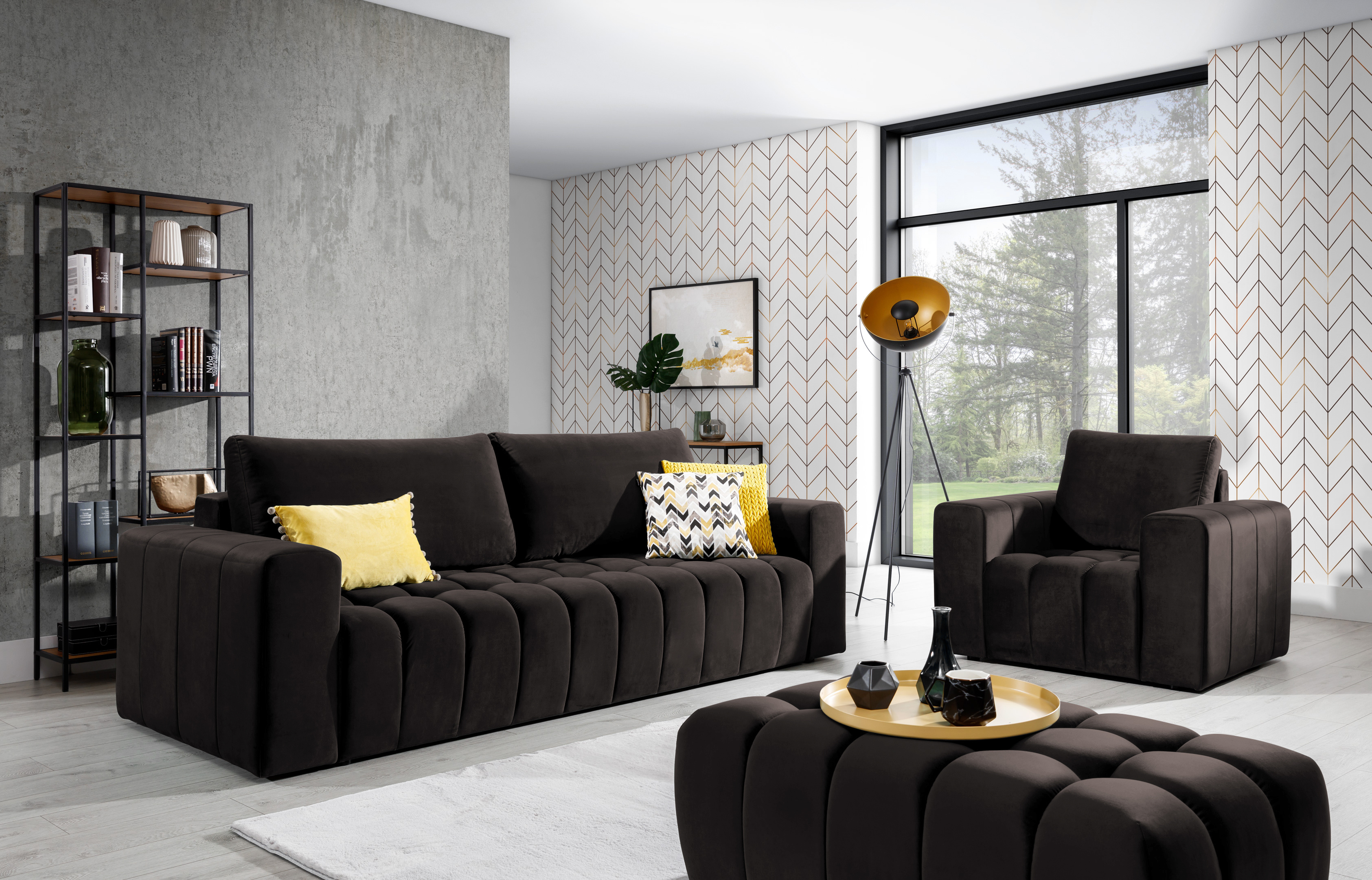 Sedací souprava Lazaro v dezénu Monolith 29 má sedáky vyroben z vlnité pružiny a pěny HR+T21. Sestava se skládá z pohovky, křesla a taburetu. Potahová látka Monolith: příjemná látka s vysokou odolností, voděodolná, odolná proti vyblednutí a žmolkování, látka po přejetí rukou stínuje. Rozkladem pohovky vznikne spací plocha 125x195 cm pro občasné přespání. Výška nožek 3 cm.