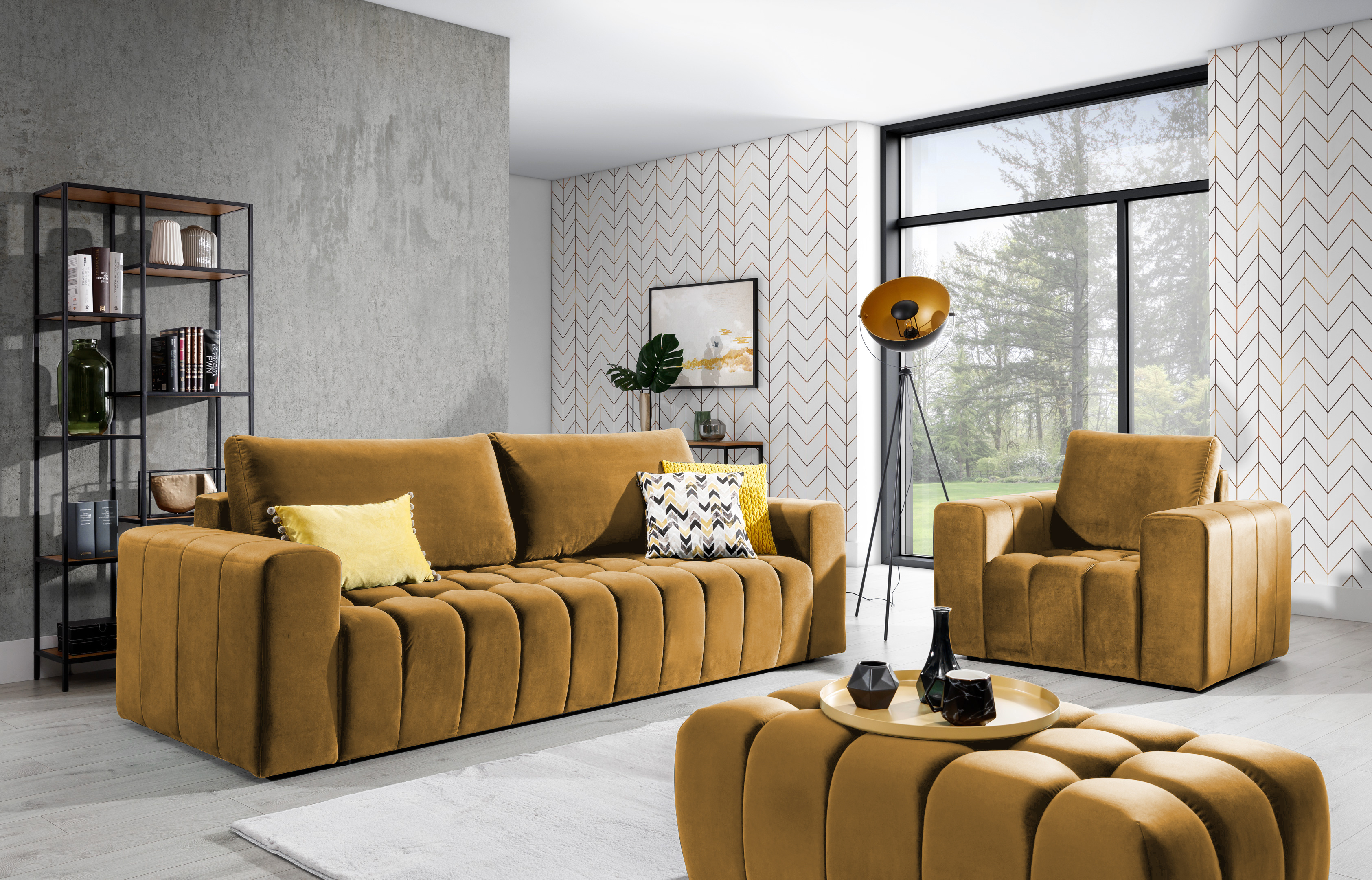 Sedací souprava Lazaro v dezénu Monolith 48 má sedáky vyroben z vlnité pružiny a pěny HR+T21. Sestava se skládá z pohovky, křesla a taburetu. Potahová látka Monolith: příjemná látka s vysokou odolností, voděodolná, odolná proti vyblednutí a žmolkování, látka po přejetí rukou stínuje. Rozkladem pohovky vznikne spací plocha 125x195 cm pro občasné přespání. Výška nožek 3 cm.