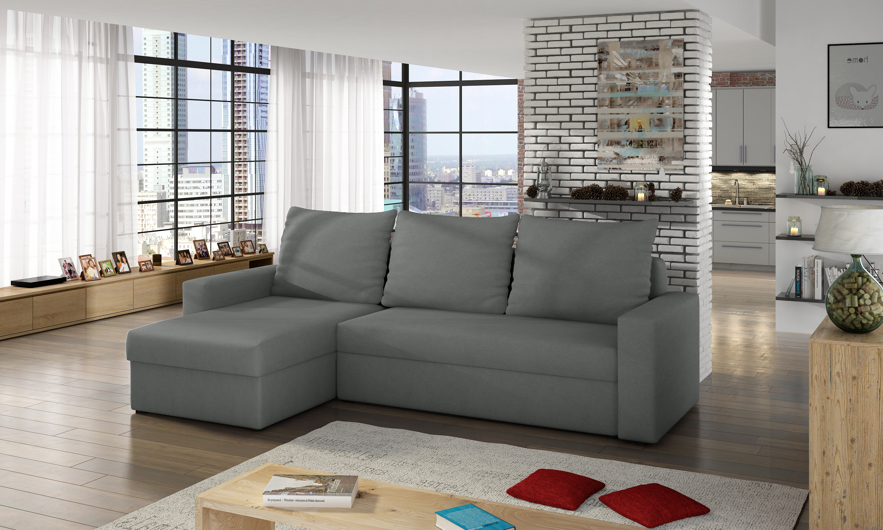 Sedací souprava v dezénu Alova 10 má sedák vyplněn pěnou T3040 a opěradlo pěnou T2542. Potahová látka Alova: vysoká jemnost - sametová textilie, připodobňuje se k plyši. Rozkladem vznikne spací plocha 125x195 cm pro příležitosné spaní. Souprava disponuje úložným prostorem. Nízké kluzákové nožičky jsou plastové. Tato sedací souprava je variabilní, kdy si stranu zvolíte až při montáži.