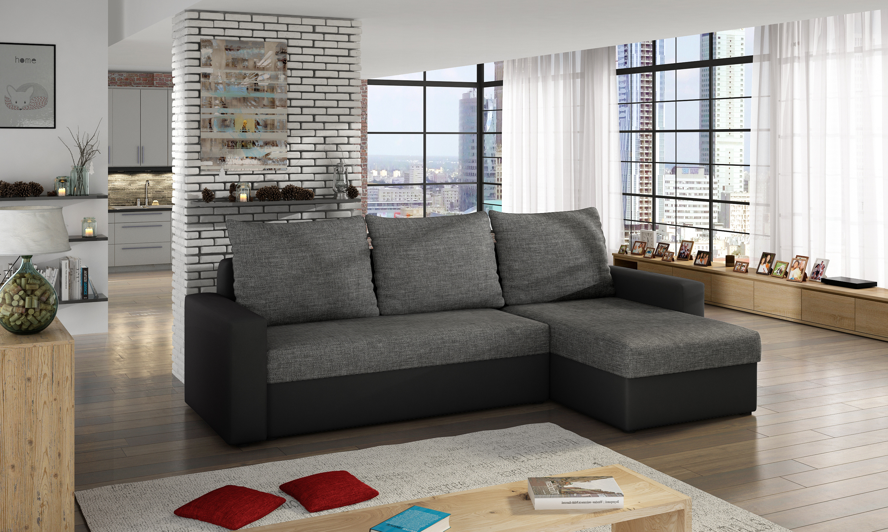 Sedací souprava v dezénu Sawana 05/eko kůže Soft 11 má sedák vyplněn pěnou T3040 a opěradlo pěnou T2542. Potahová látka Sawana: jemná, hustá a hladká vazba, vysoce odolná i proti žmolkování. Potahová látka Soft: silná, pevná, nepružná a odolná eko kůže, měkká a na dotek příjemná s velmi sytým barevným provedením. Rozkladem vznikne spací plocha 125x195 cm pro příležitosné spaní. Souprava disponuje úložným prostorem. Nízké kluzákové nožičky jsou plastové. Tato sedací souprava je variabilní, kdy si stranu zvolíte až při montáži.