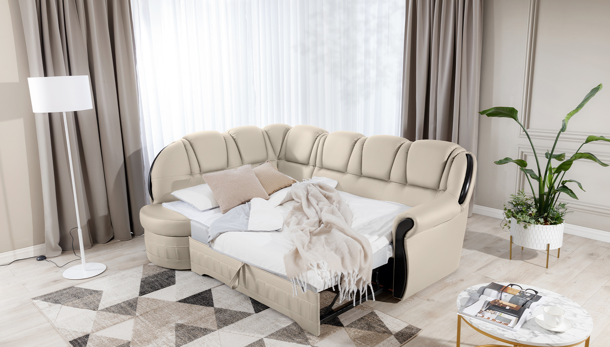 Sedací souprava v dezénu eko kůže Soft 33 má sedák vyplněn pěnou T3040 a opěradlo pěnou T2542. Potahová látka Soft: silná, pevná, nepružná a odolná eko kůže, měkká a na dotek příjemná s velmi sytým barevným provedením.  Rozkladem vznikne spací plocha 135x187 cm pro příležitosné spaní. Souprava disponuje úložným prostorem. Nízké kluzákové nožičky jsou plastové.