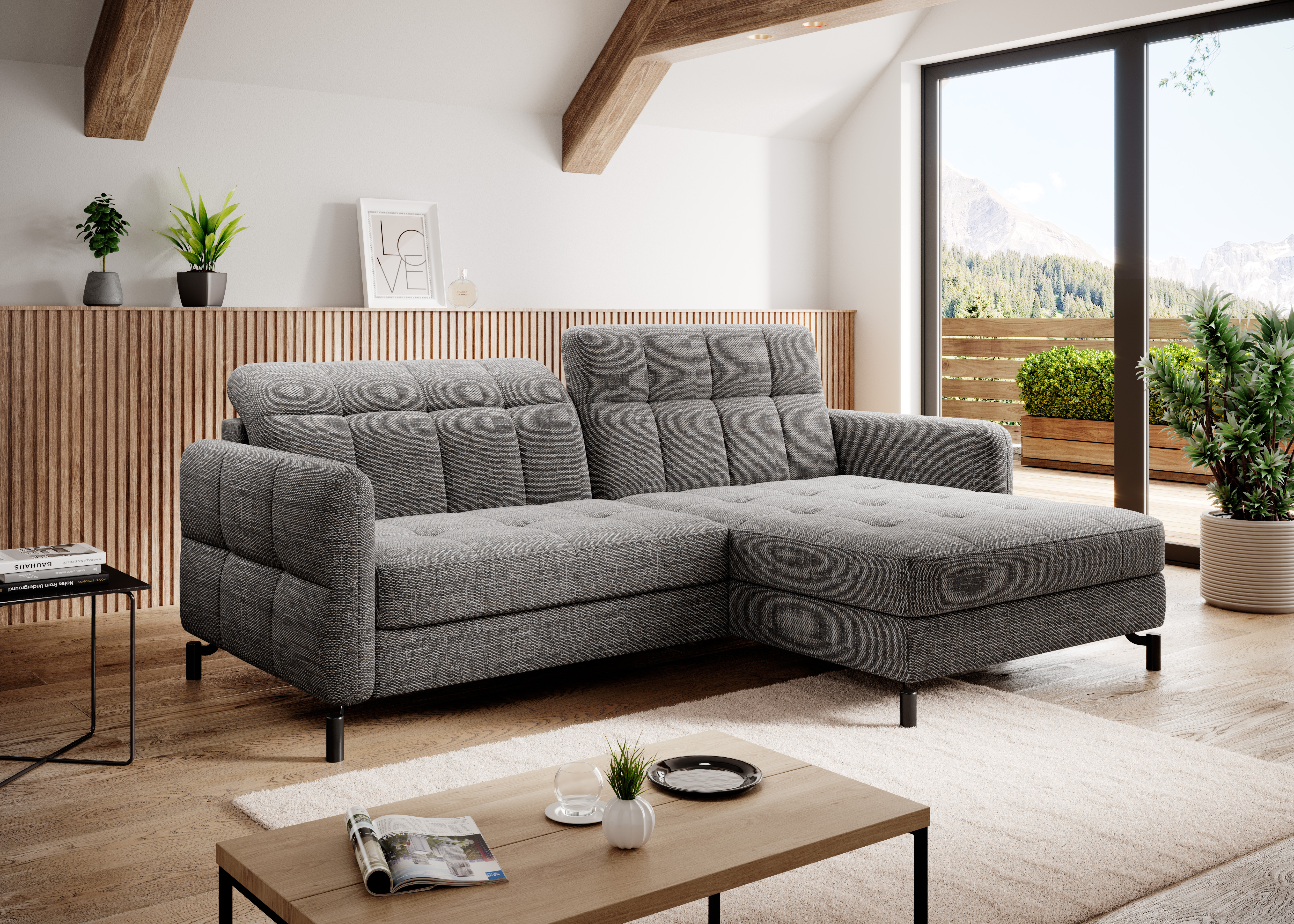 Sedací souprava v dezénu Berlin 01 má sedák vyplněný HR pěnou a opěradlo pěnou T25. Potahová látka Berlin: příjemná na dotek, s velmi výraznou a zajímavou vazbou, s příměsí viskózy a bavlny. Sedací souprava disponuje úložným prostorem a rozkladem vznikne spací plocha 110x200 cm. Předností jsou vyšší područky a polohovatelné opěrky hlavy. Nožky jsou chromované v černé barvě o výšce 13 cm.