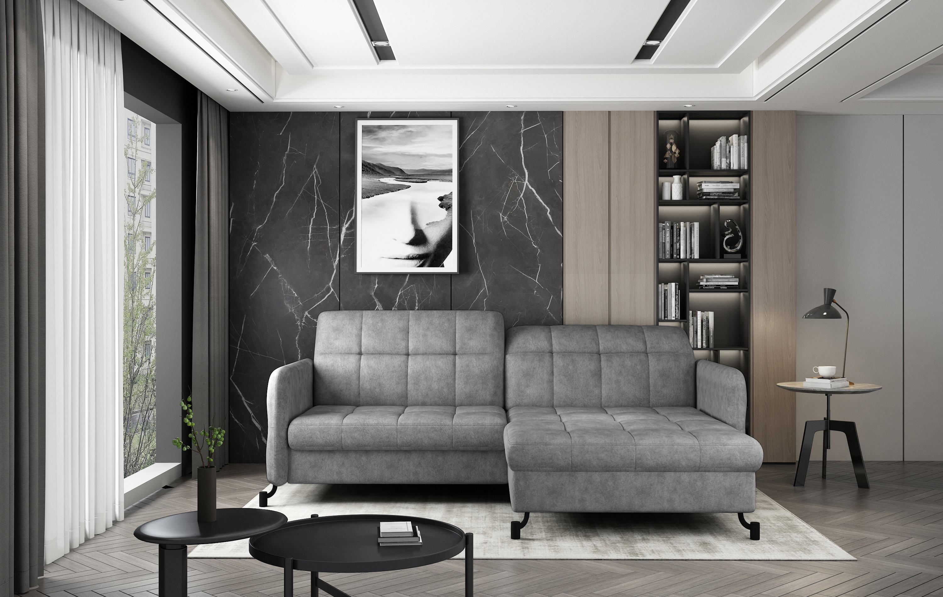 Sedací souprava v dezénu Dora 21 má sedák vyplněný HR pěnou a opěradlo pěnou T25. Potahová látka Dora: pevná a měkká látka, sametová látka imitující kůži, snadno se čistí, velmi odolná proti oděru. Sedací souprava disponuje úložným prostorem a rozkladem vznikne spací plocha 110x200 cm. Předností jsou vyšší područky a polohovatelné opěrky hlavy. Nožky jsou chromované v černé barvě o výšce 13 cm.