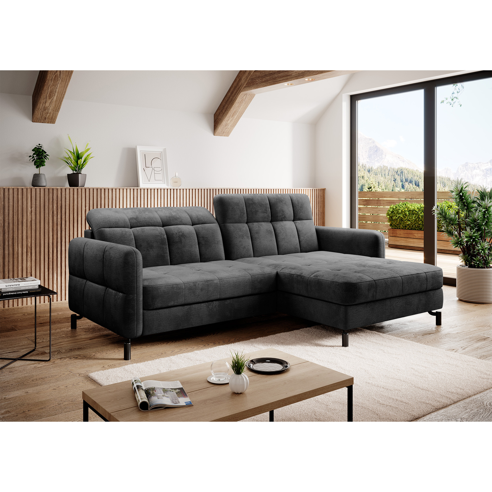 Sedací souprava v dezénu Monolith 97 má sedák vyplněný HR pěnou a opěradlo pěnou T25. Potahová látka Monolith: příjemná látka s vysokou odolností, voděodolná, odolná proti vyblednutí a žmolkování, látka po přejetí rukou stínuje. Sedací souprava disponuje úložným prostorem a rozkladem vznikne spací plocha 110x200 cm. Předností jsou vyšší područky a polohovatelné opěrky hlavy. Nožky jsou chromované v černé barvě o výšce 13 cm.
