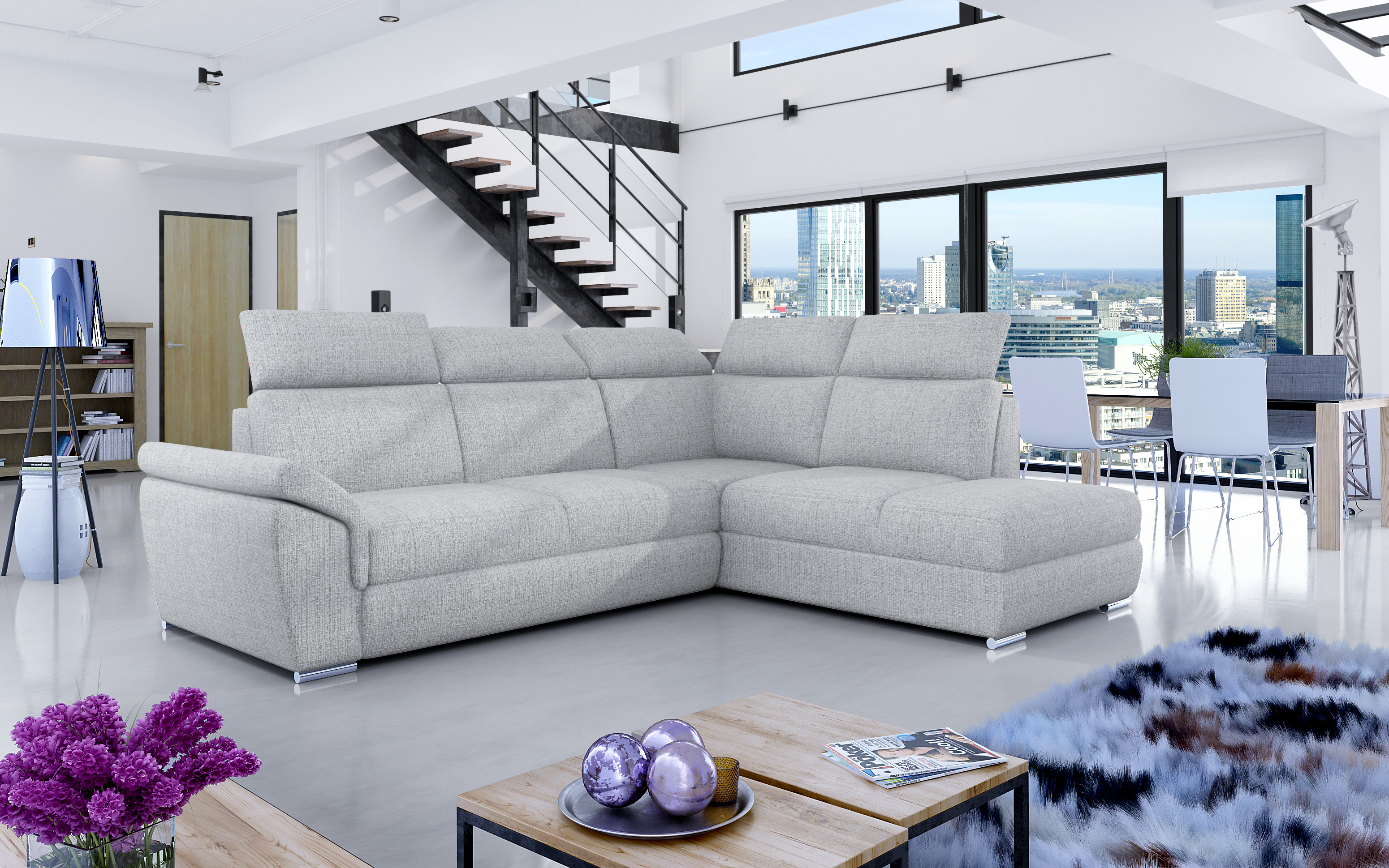 Sedací souprava v dezénu Solid 09 má sedák vyplněn pěnou T3030 a opěradlo pěnou T2542. Potahová látka Solid: příjemná na dotek, je to syntetická tkanina odolná proti odlupování, má také vysokou odolnost proti oděru. Rozkladem vznikne ložná plocha 125x190 cm pro občasné přespání. Úložný prostor je přístupný pomocí pružinového zvedáku. Oválné chromované nohy jsou vysoké 5 cm.