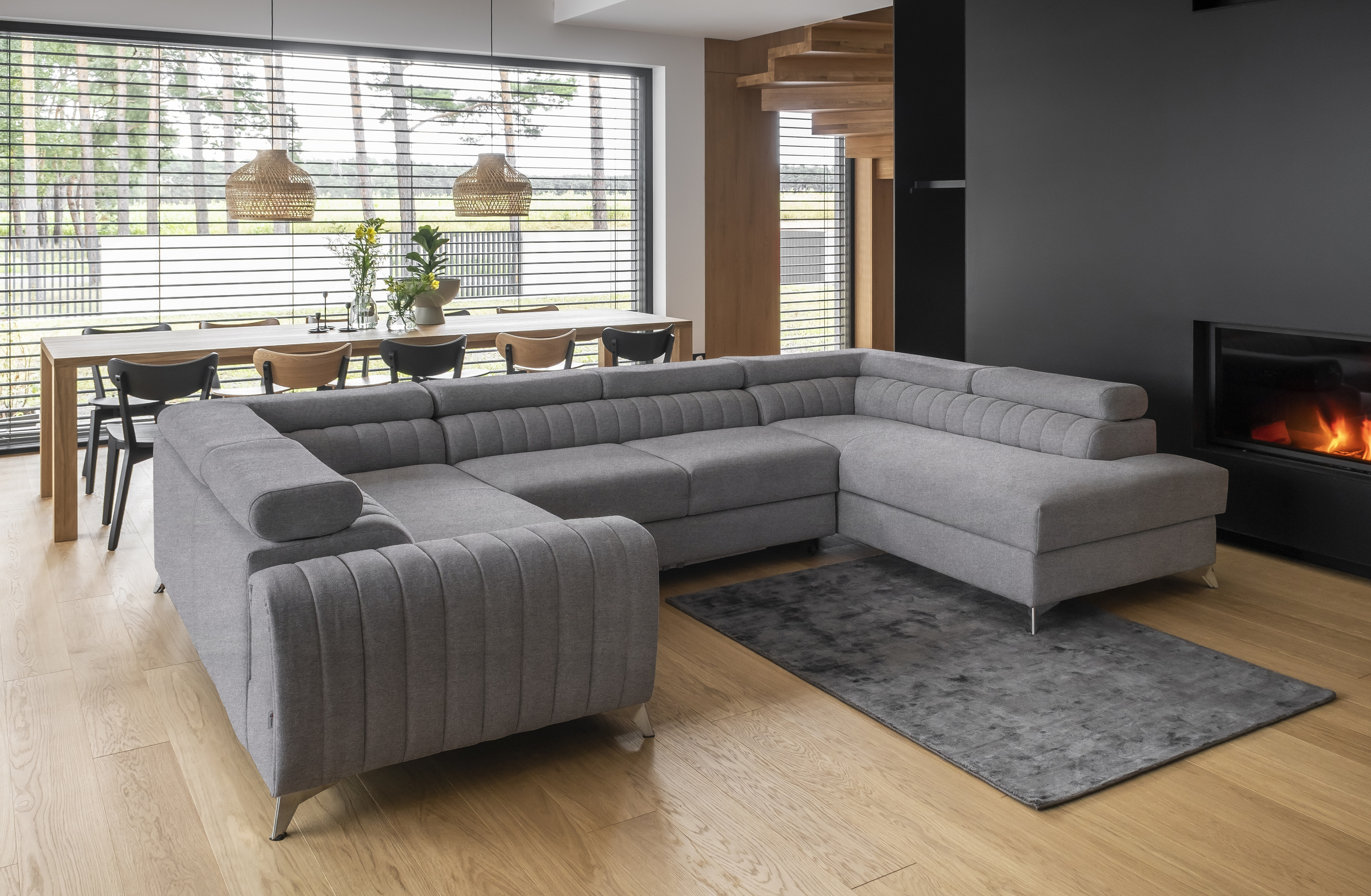 Sedací souprava Louis v dezénu Poco 4 má sedák vyplněn pěnou T3030 a opěradlo pěnou T2542. Potahová látka Poco: vysoce odolná a pevná, hladký povrch s jemným odleskem je odolná vůči dennímu světlu - nevybledne. Rozkladem vznikne spací plocha 123x254 cm pro občasné přespání. Sedací souprava disponuje úložným prostorem a má čalouněná záda. Nožky jsou chromované a 9 cm vysoké.