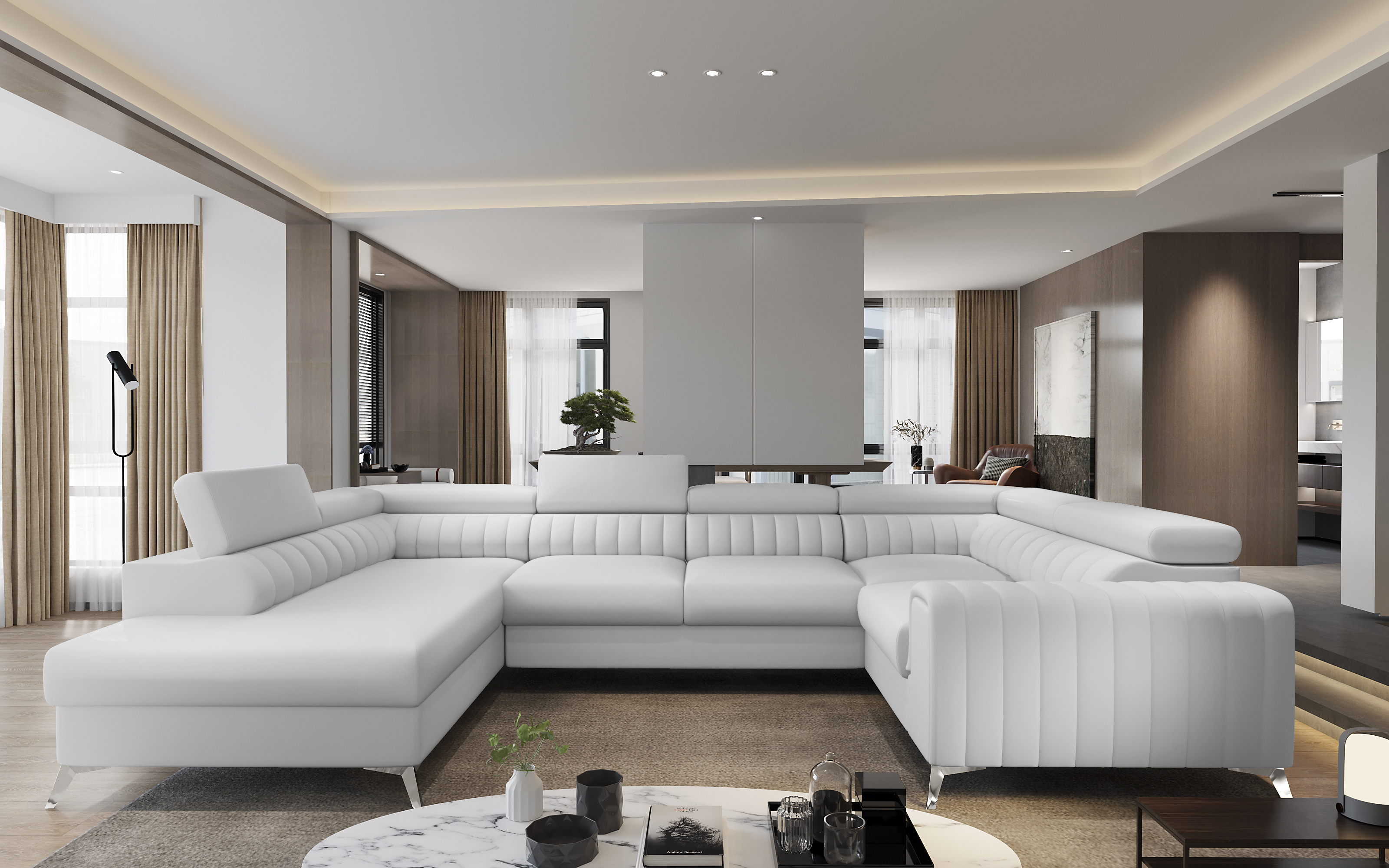 Sedací souprava Louis v dezénu Softis 17 má sedák vyplněn pěnou T3030 a opěradlo pěnou T2542. Potahová látka Softis: pevná látka, imitace přírodní kůže, po přejetí rukou nestínuje, její struktura je extrémně měkká a příjemná na dotek. Rozkladem vznikne spací plocha 123x254 cm pro občasné přespání. Sedací souprava disponuje úložným prostorem a má čalouněná záda. Nožky jsou chromované a 9 cm vysoké.