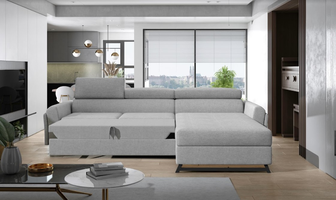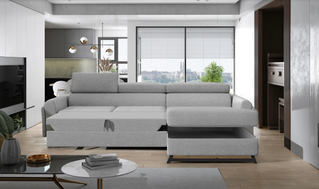 Rohová sedací souprava MARIALL má eleganci, pohodlí a úroveň. Maximální pohodlí vám zajistí pěny T30 a HR, ze kterých je zhotoven hluboký sedák. Díky nim je sedací souprava odolná proti deformacím všeho druhu a vaše tělo proti bolesti zad. Široké područky a 25 cm opěrky hlavy zvyšují komfort každodenního používání. Sedací souprava ve tvaru písmene L může zaujmout formu lůžka s plochou 110 x 240 cm. Sedačka je vybavena objemným úložným prostorem. Tuto sedací soupravu lze vyrobit v pravém či levém provedení. Potahová látka jako na hlavní fotografii.